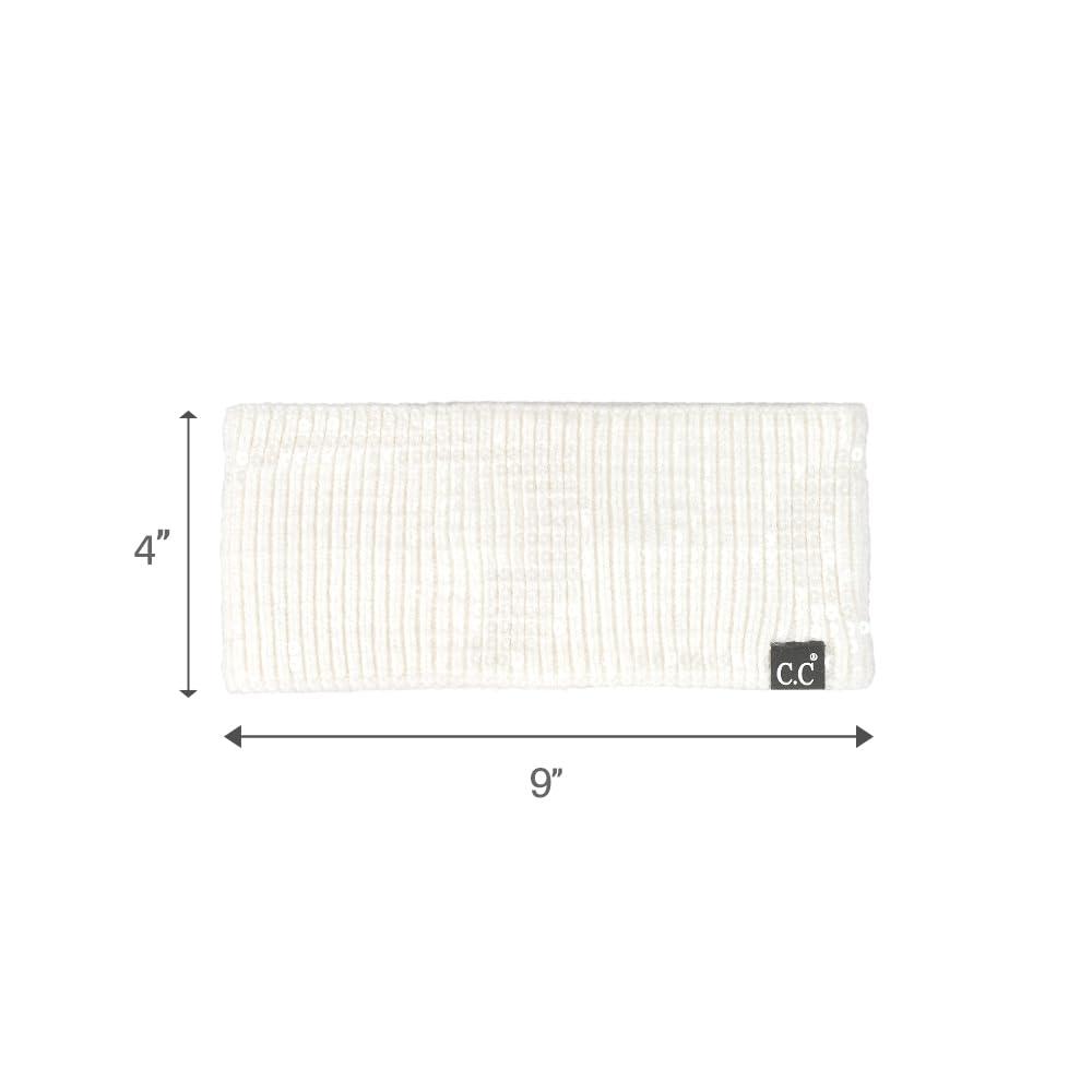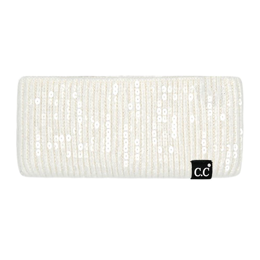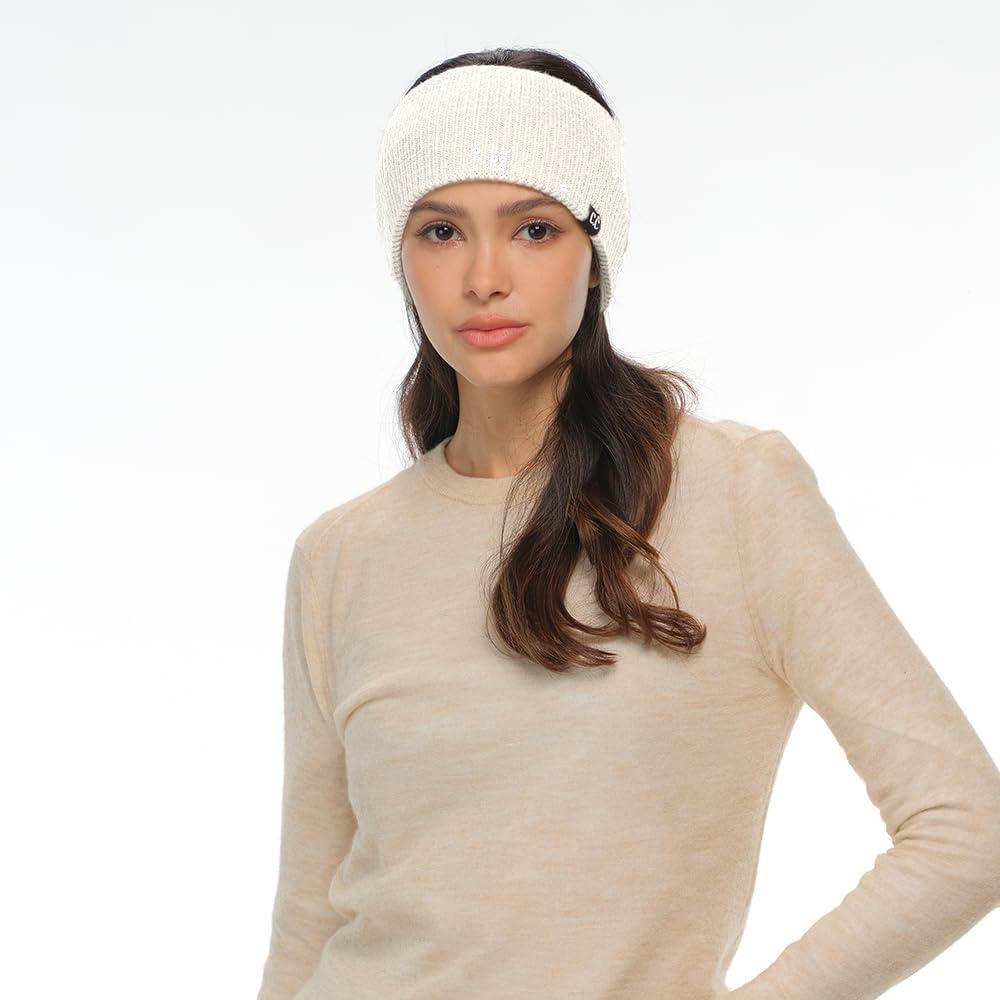 C.C All Over Clear Sequin Headwrap for Women – Stretchable Soft Warm Knit Winter Headband Ear Warmer Ear Muffs (Lilac)(Clear Sequin-ivory)