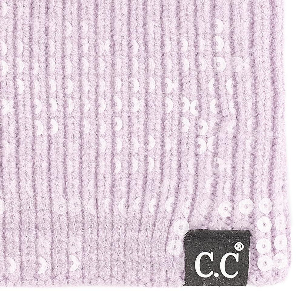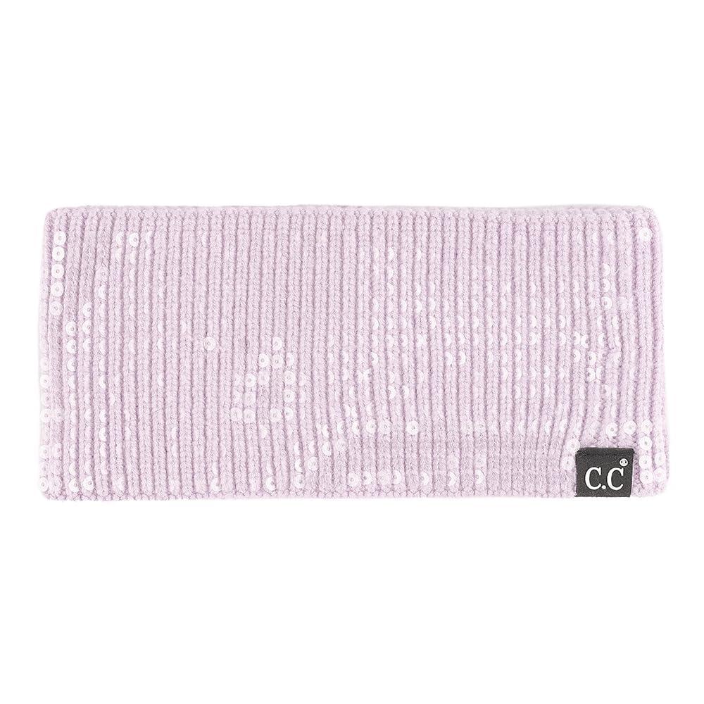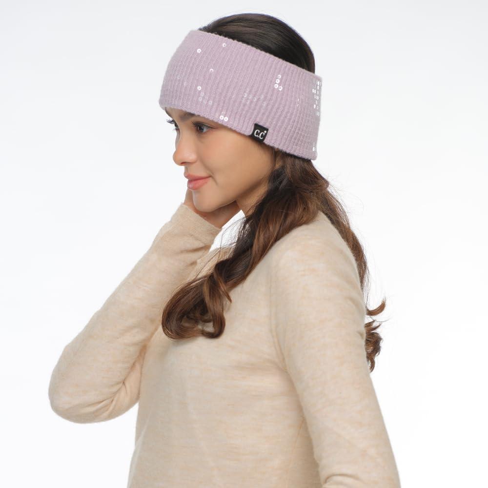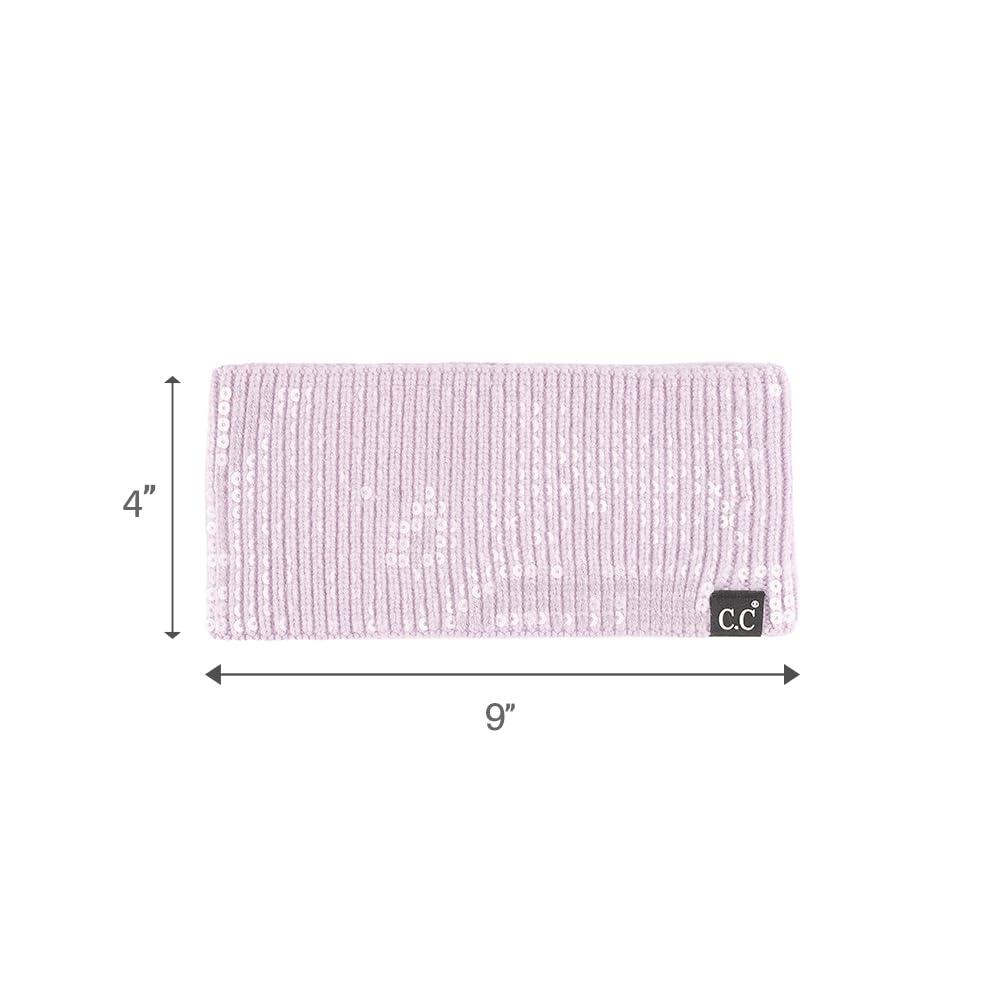 C.C All Over Clear Sequin Headwrap for Women - Stretchable Soft Warm Knit Winter Headband Ear Warmer Ear Muffs (Lilac)(Clear Sequin-lilac)