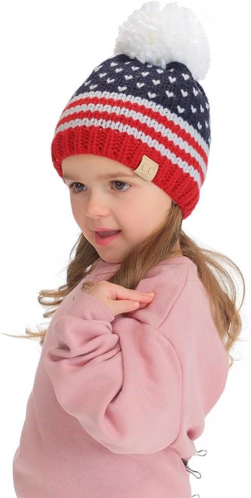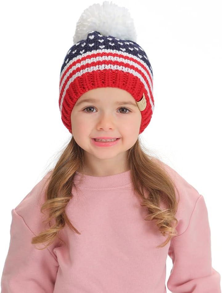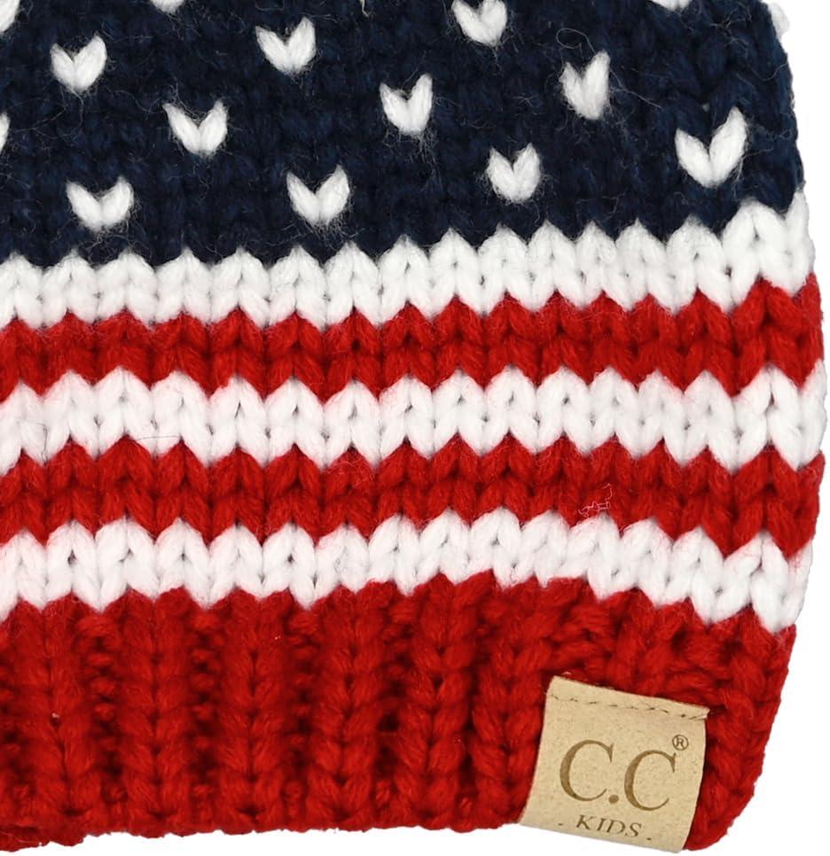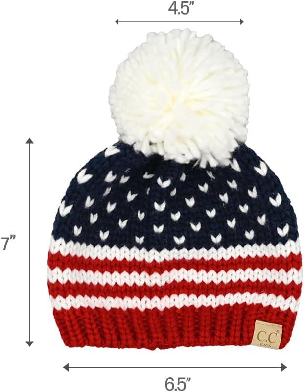 C.C American Beanie with Iceland Wool Pom for Women Unisex Soft Warm with Iceland Pom Knit Winter Skully Hat(American Flag – Kids)