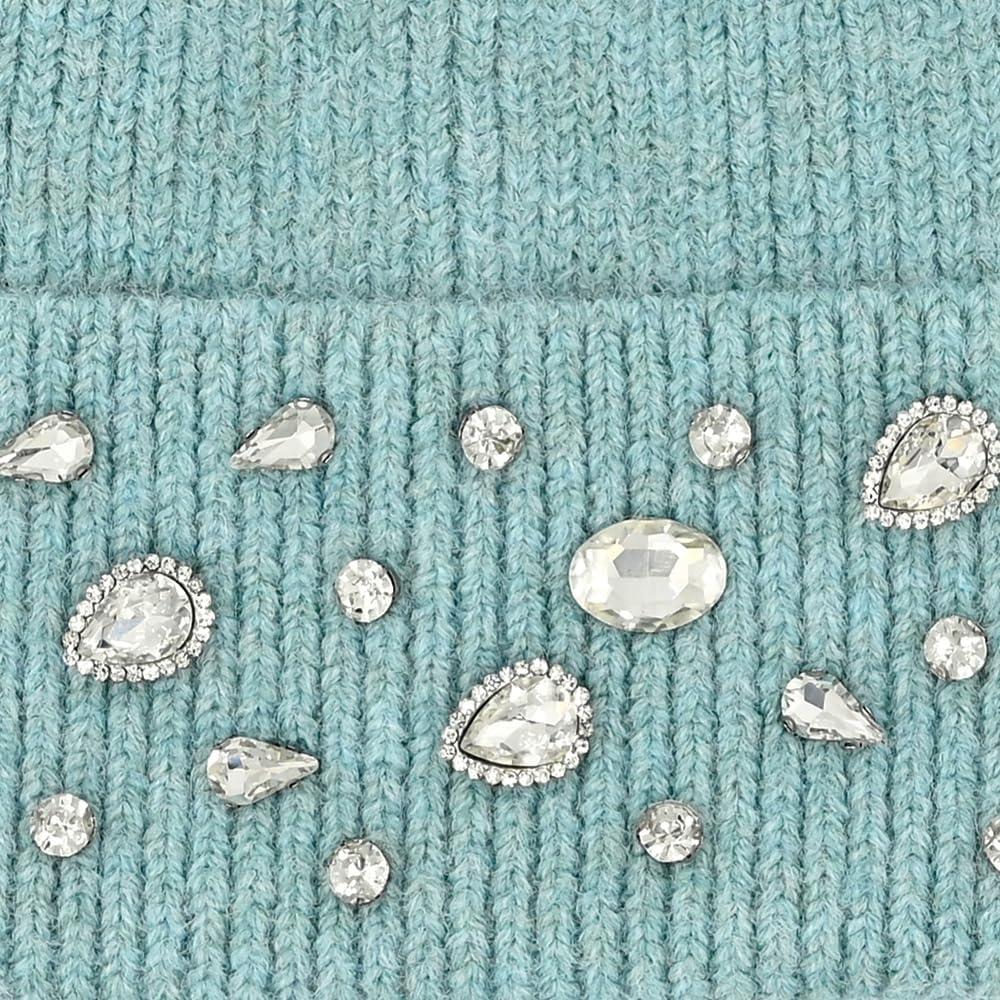 C.C American Flag Rhinestone Beanie for Women Unisex - Sustainable Recycled Yarn Stretchable Soft Warm Knit Winter Skully Hat(Rhinestone-dusty Mint)