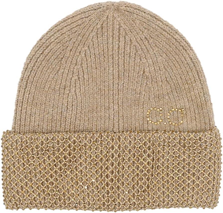 C.C American Flag Rhinestone Beanie for Women Unisex - Sustainable Recycled Yarn Stretchable Soft Warm Knit Winter Skully Hat(Rhinestone Net-camel)