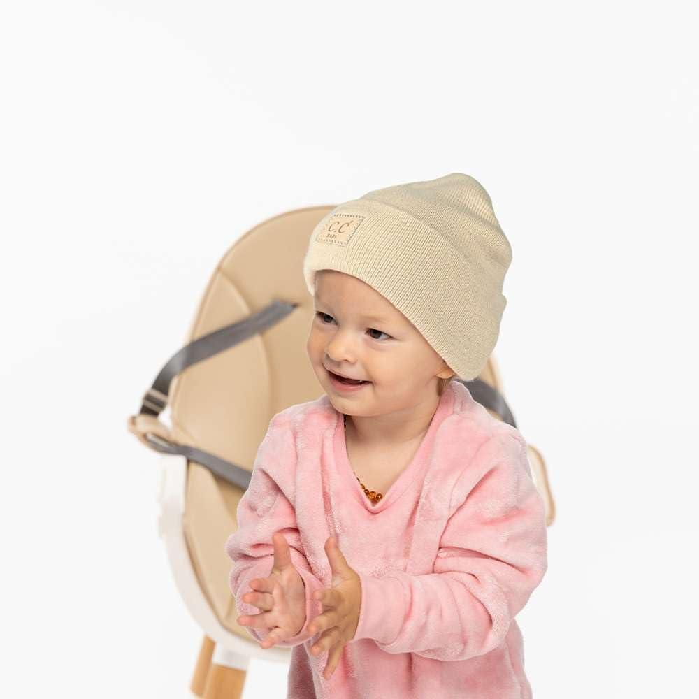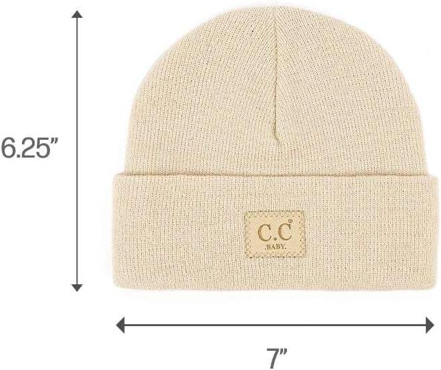 C.C Babies’ Winter Knit Plain Cuff Skull Cap Beanie Hat(Beige)