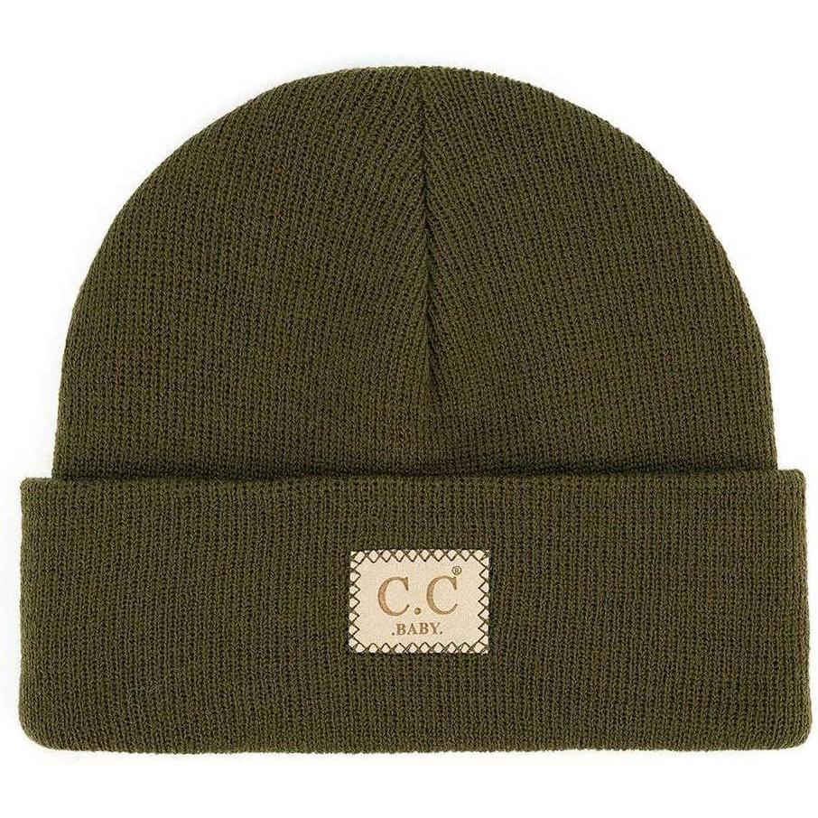 C.C Babies' Winter Knit Plain Cuff Skull Cap Beanie Hat(Dark Olive)
