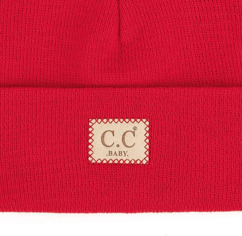 C.C Babies' Winter Knit Plain Cuff Skull Cap Beanie Hat(Red)