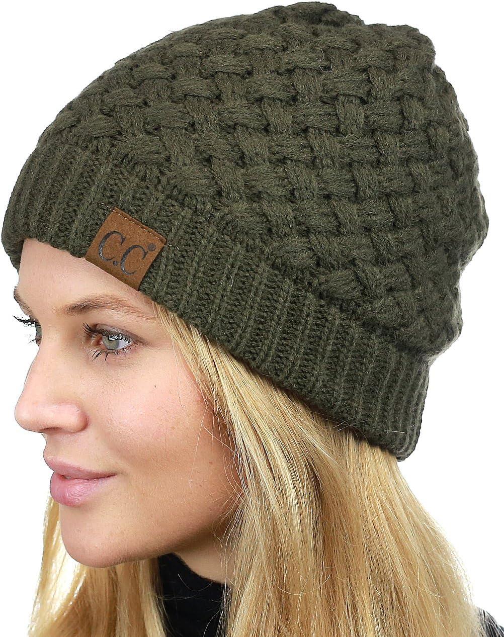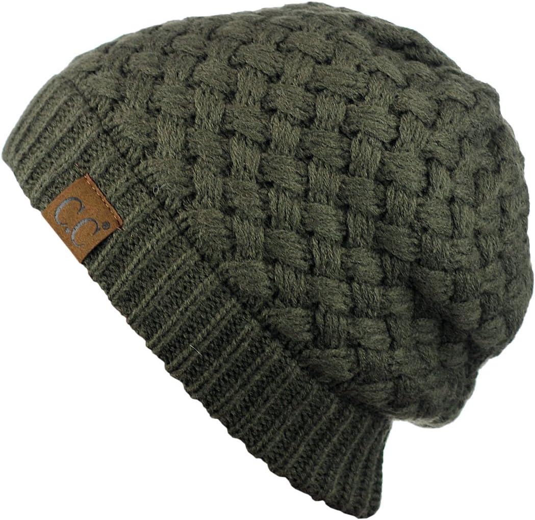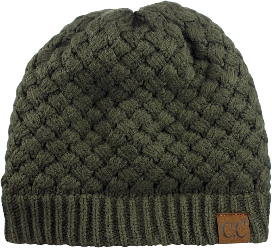 C.C Basketweave Knit Warm Inner Lined Soft Stretch Skully Beanie Hat(Dark Olive)