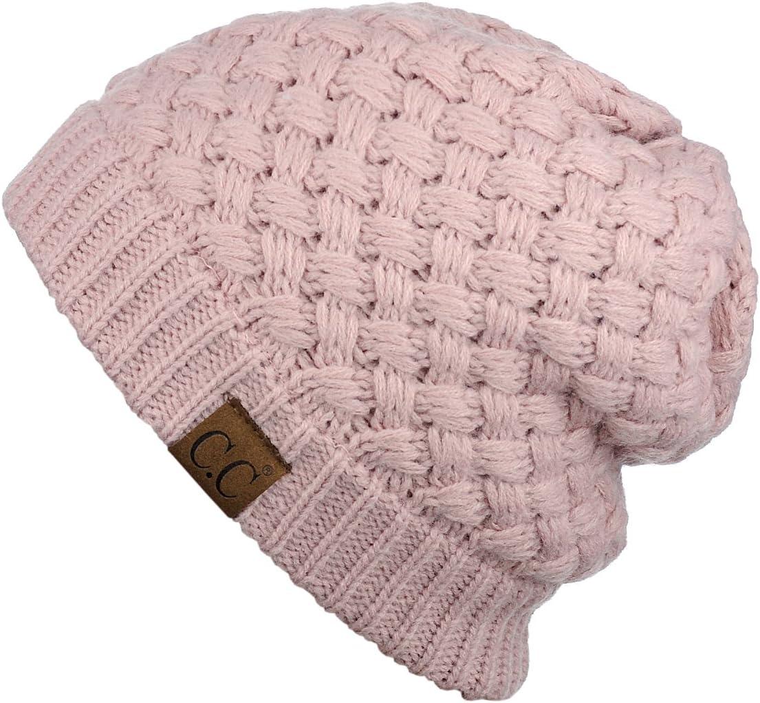 C.C Basketweave Knit Warm Inner Lined Soft Stretch Skully Beanie Hat(Rose)
