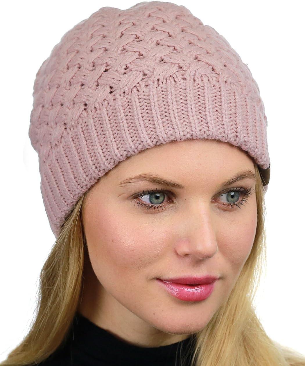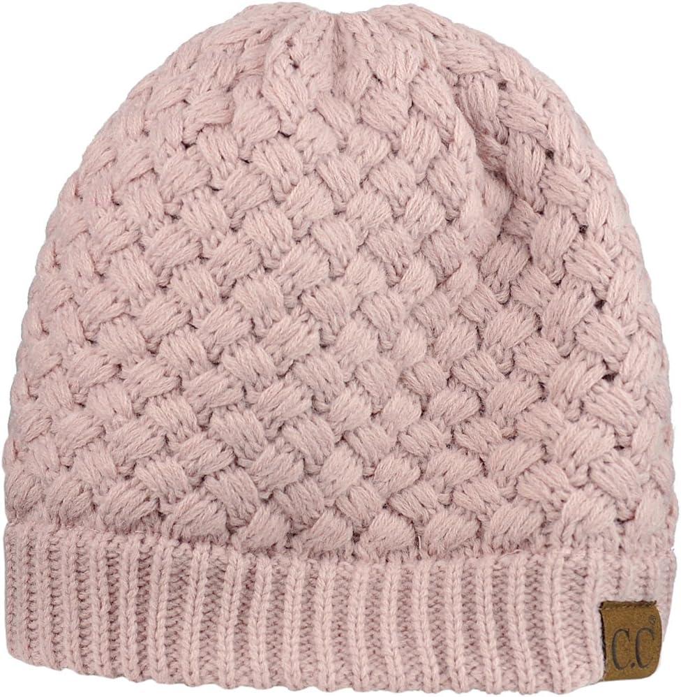 imageCC Basketweave Knit Warm Inner Lined Soft Stretch Skully Beanie HatRose