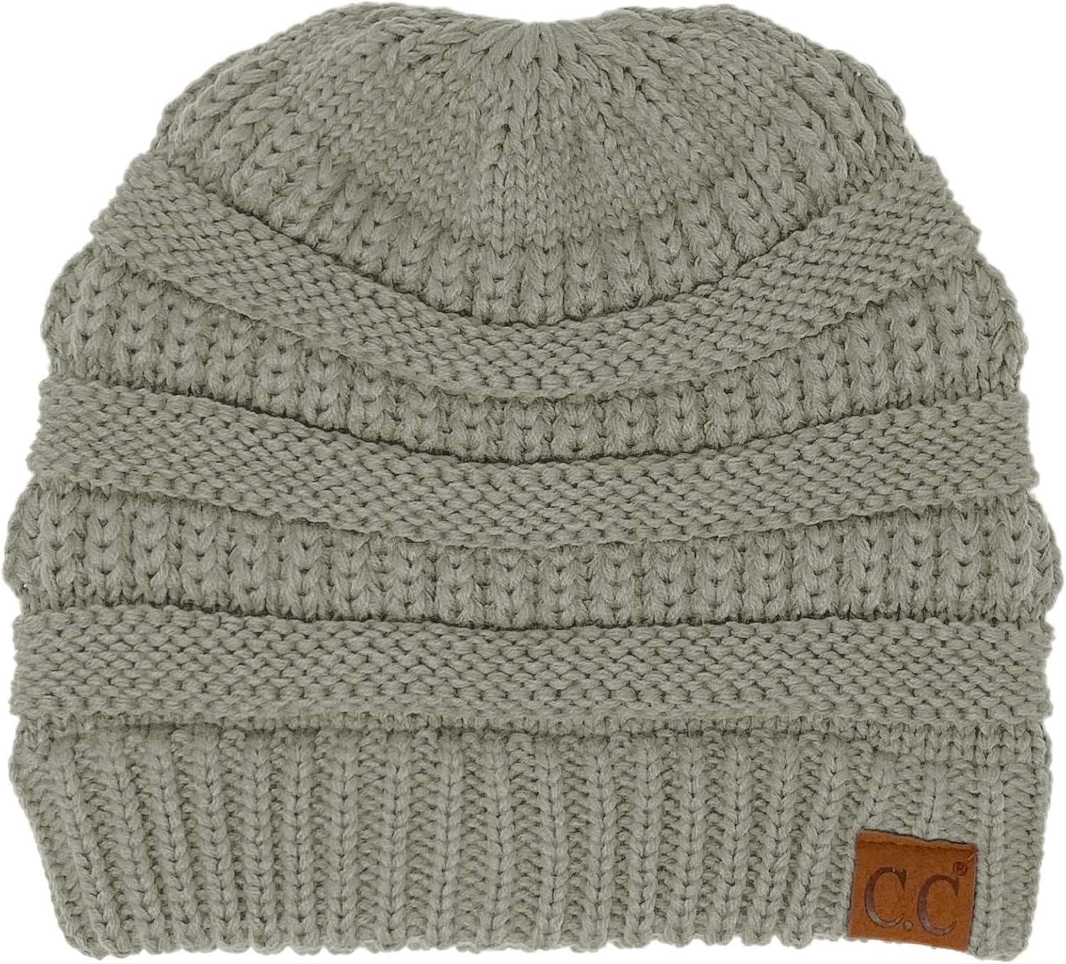 C.C Beanie for Women Winter Hats Ponytail Hole Criss Cross Hat Messy Bun High Ponytail Knit Cap(Light Melange Grey)