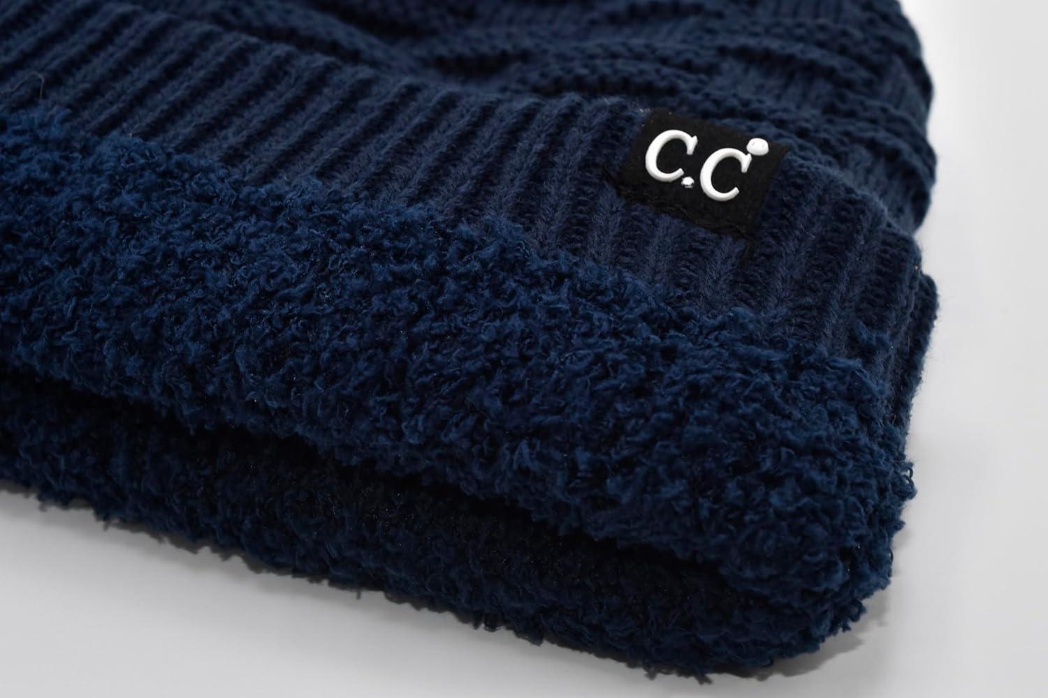 C.C Beanie Thick Fuzzy Fleece Lined Knit Beanie(Navy Blue)
