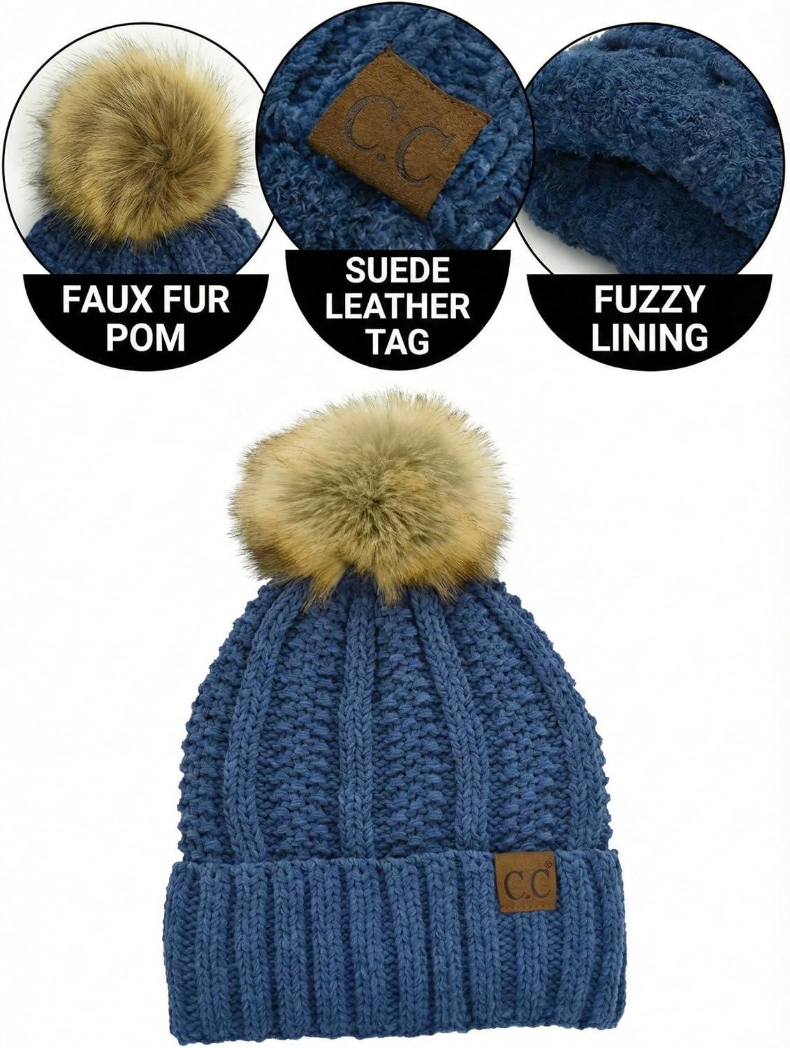 C.C Beanie Women’s Cozy Chenille Pom Hat — Warm Fashionable Soft Touch Winter Beanie(Dark Denim Blue)