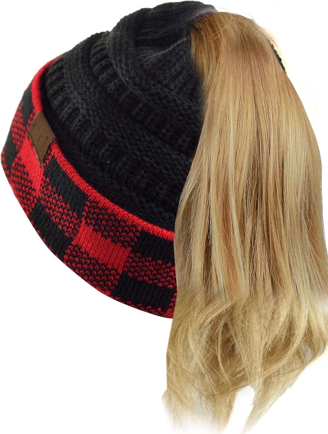 Our holiday sale features the best deals on C.C BeanieTail Cable Knit Messy High Bun Ponytail Cuff Beanie Hat(Buffalo Checkered Red/Black) and accessories. Shop now and save!