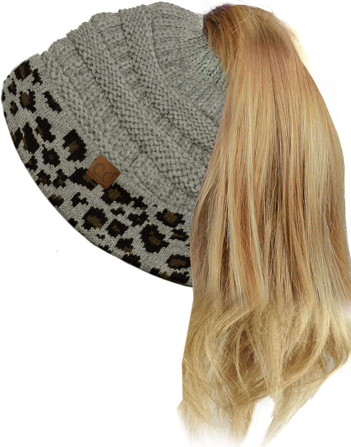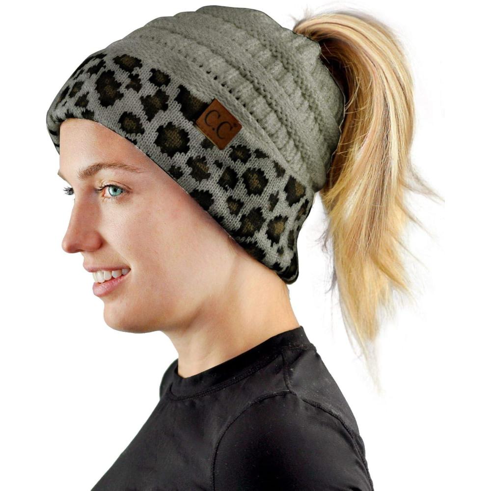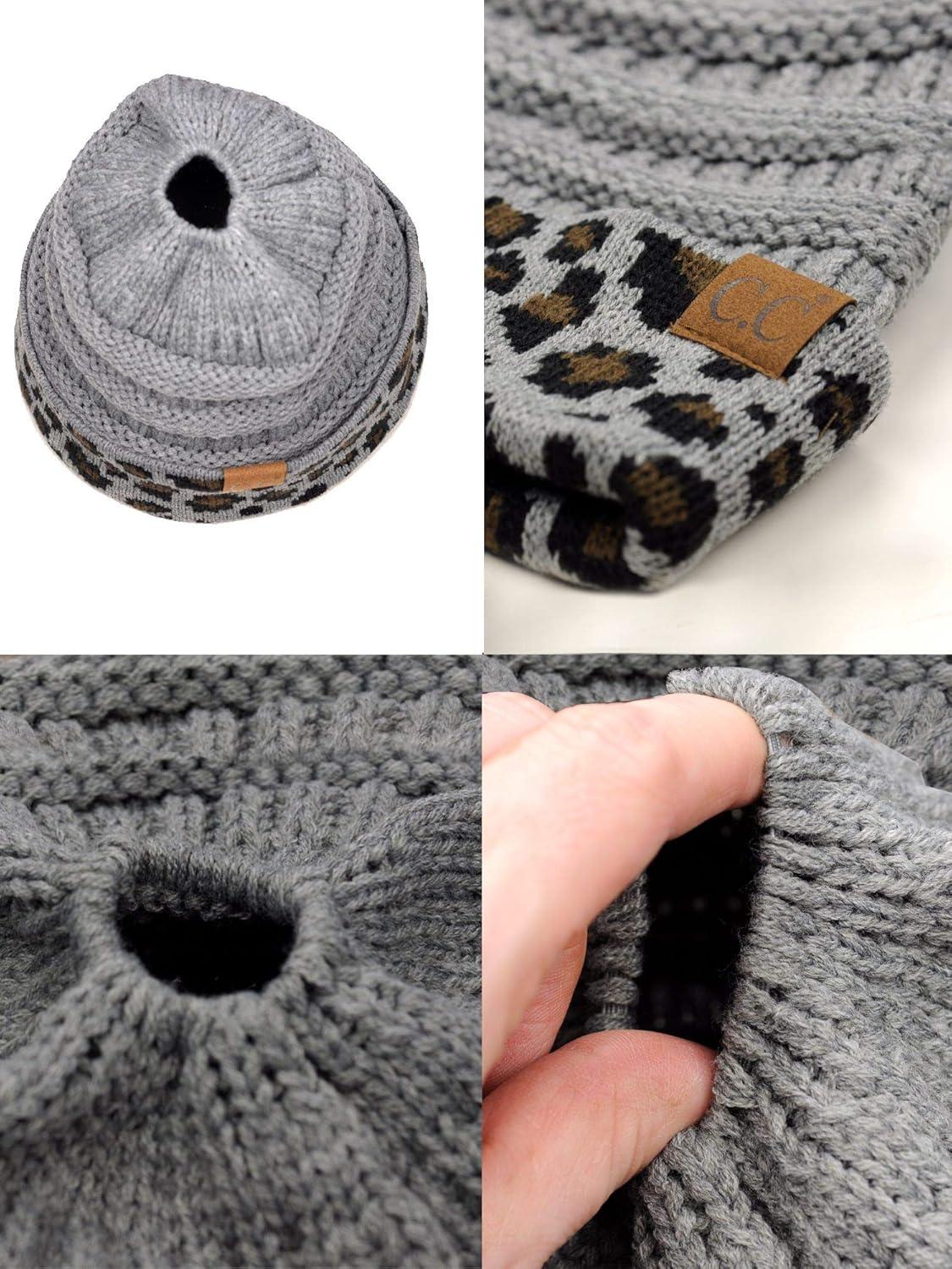 Score big savings on C.C BeanieTail Cable Knit Messy High Bun Ponytail Cuff Beanie Hat(Leopard Light Melange Gray) during our back-to-school sale. Limited quantities available.