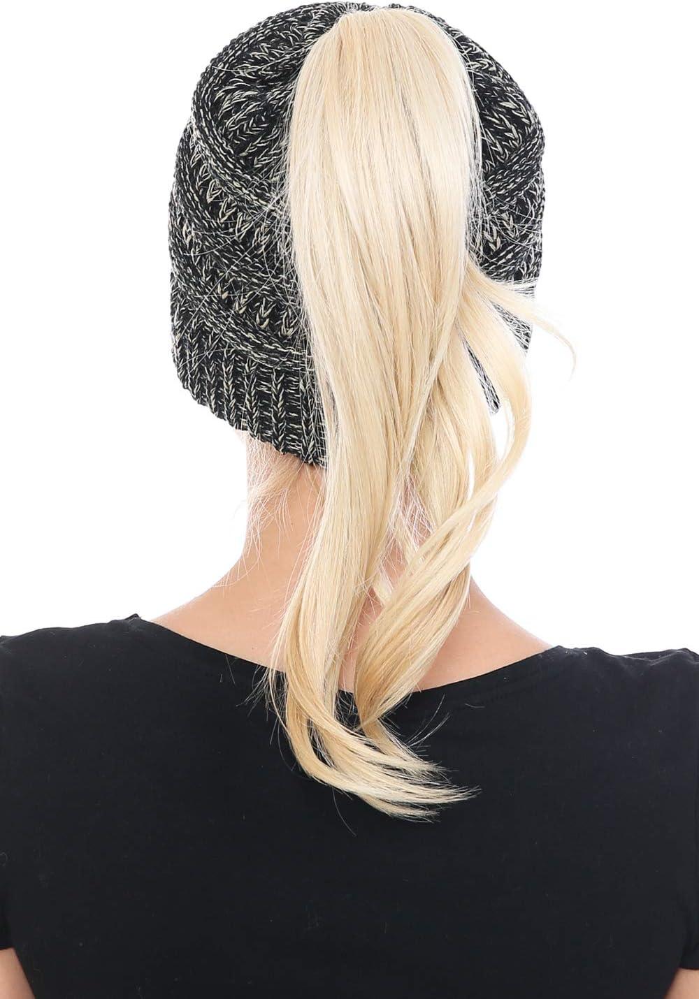 Be the first to review “C.C BeanieTail Soft Stretch Cable Knit Messy High Bun Ponytail Beanie Hat(2 Tone Black/Dark Beige)”
