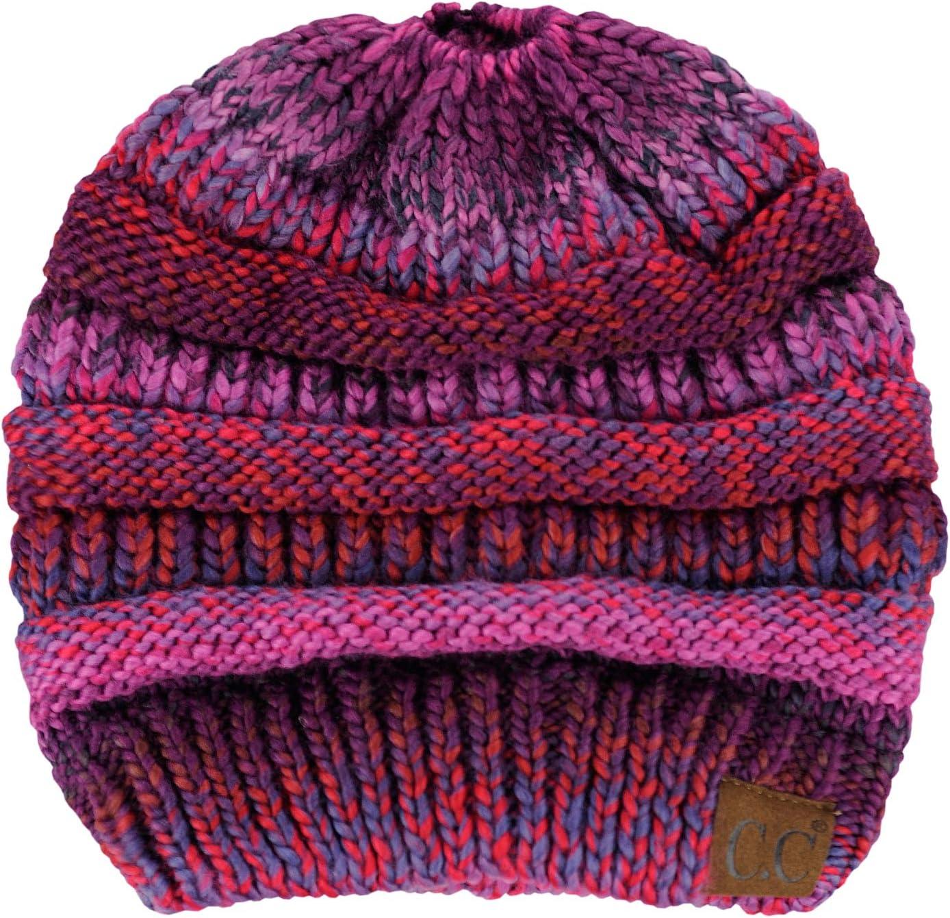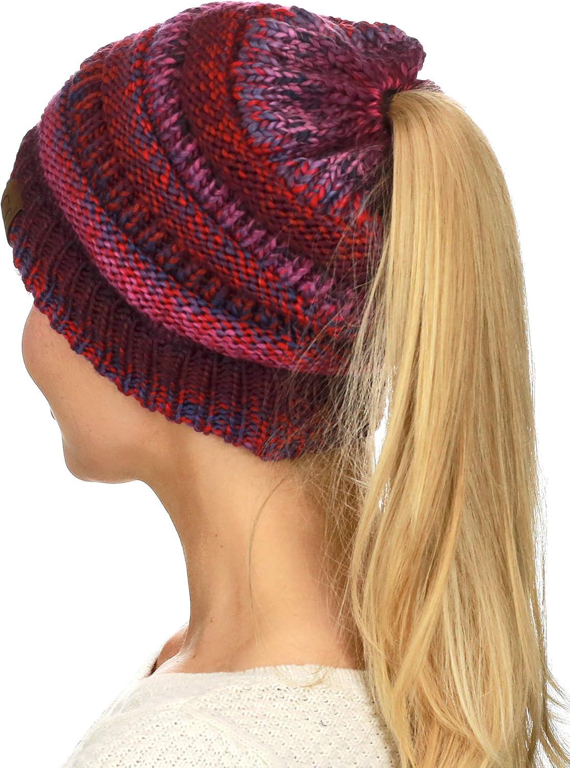 Be the first to review “C.C BeanieTail Soft Stretch Cable Knit Messy High Bun Ponytail Beanie Hat(Burgundy Tribal Blend)”