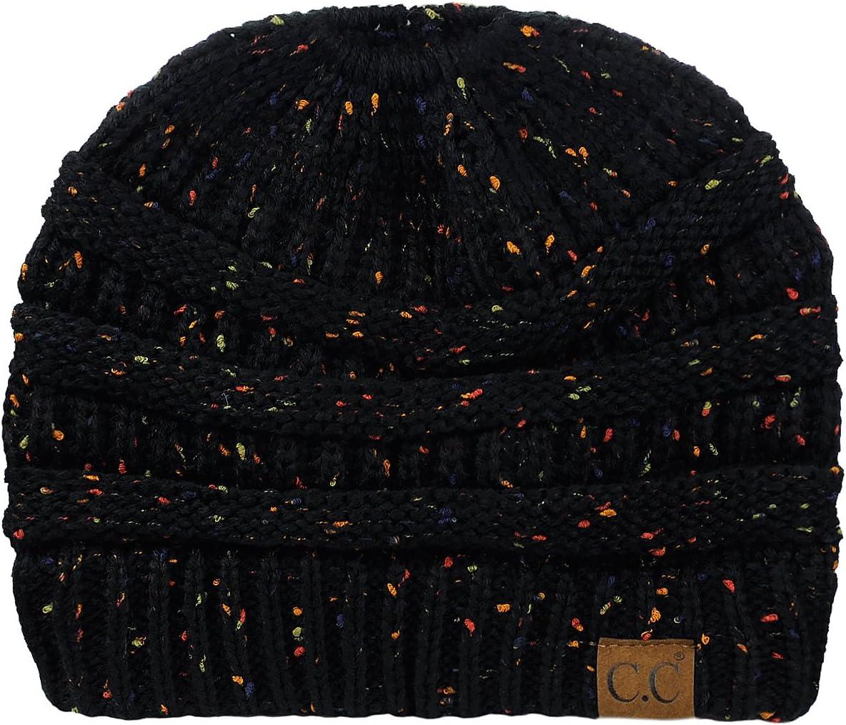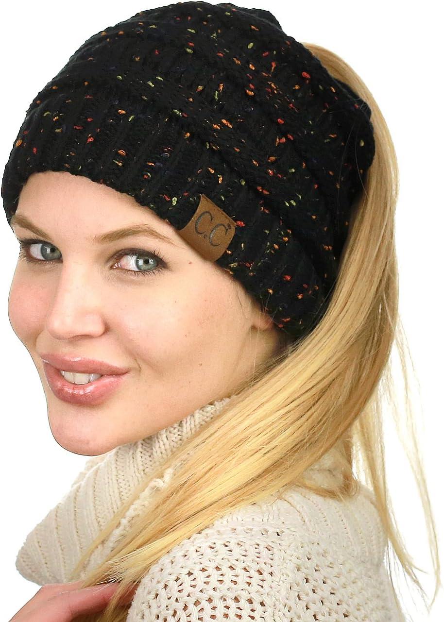 C.C BeanieTail Soft Stretch Cable Knit Messy High Bun Ponytail Beanie Hat(Confetti Black)