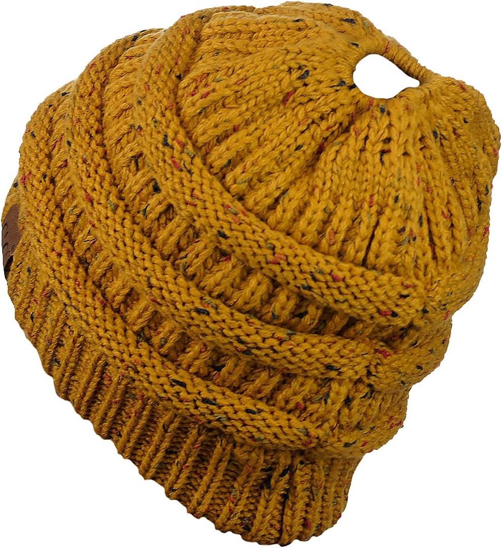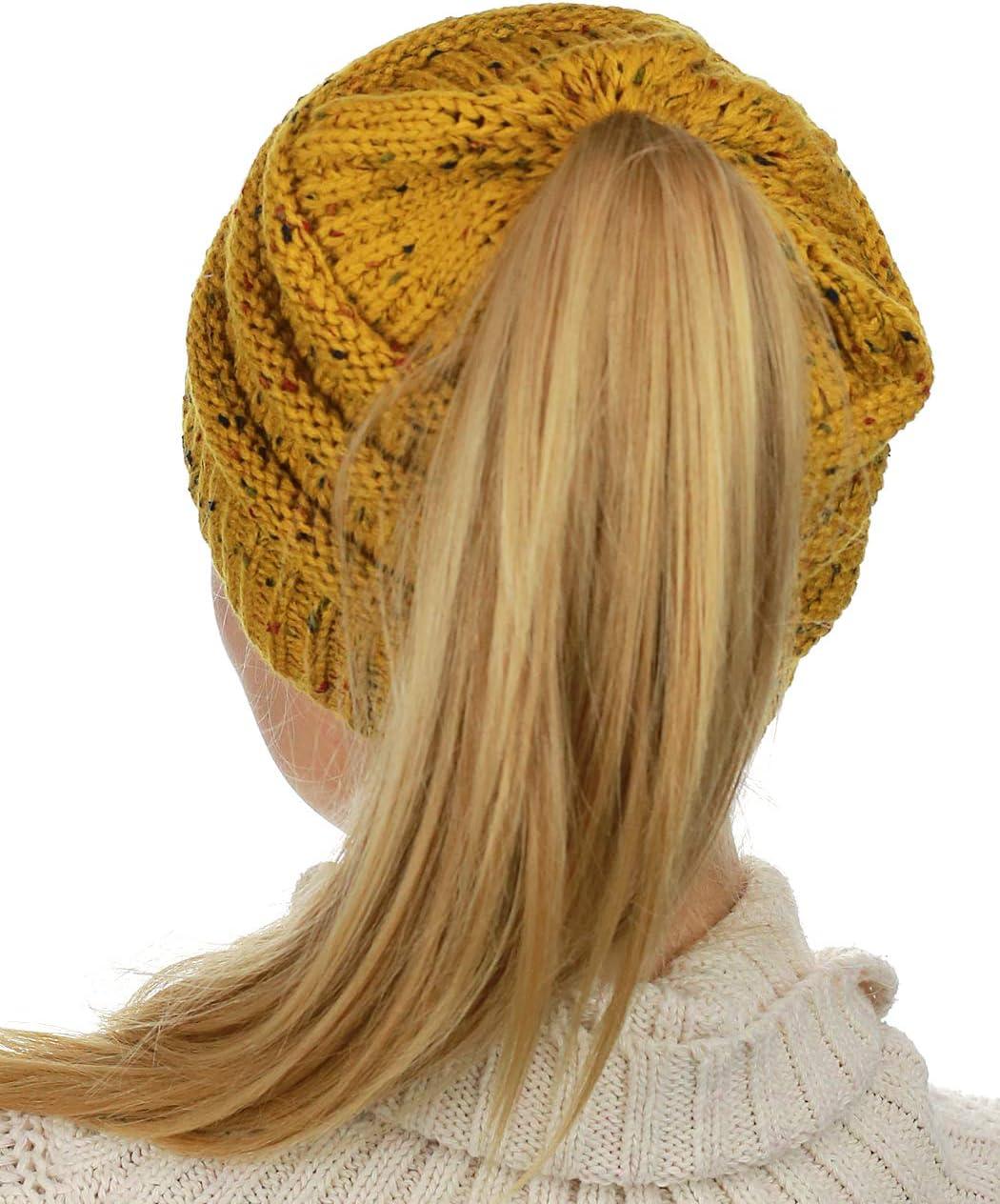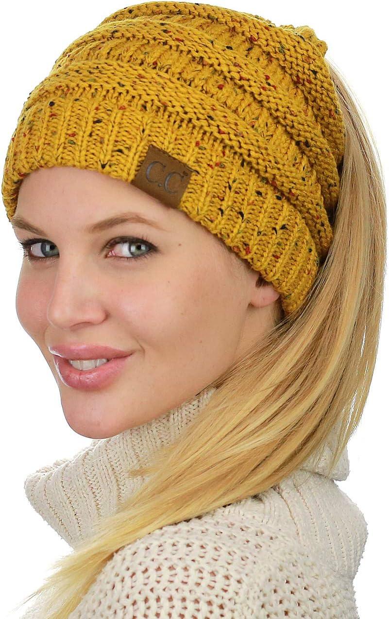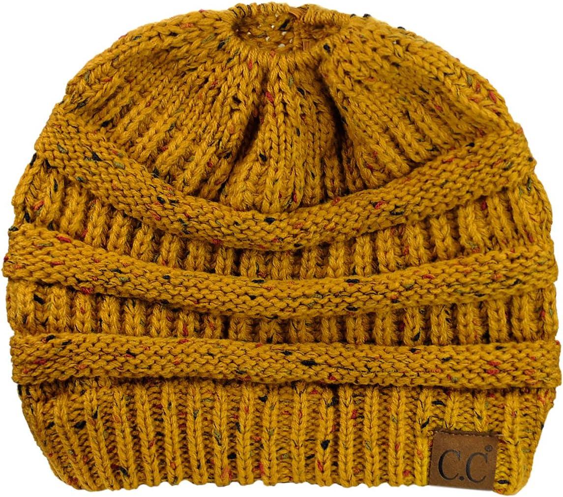 C.C BeanieTail Soft Stretch Cable Knit Messy High Bun Ponytail Beanie Hat(Confetti Mustard)