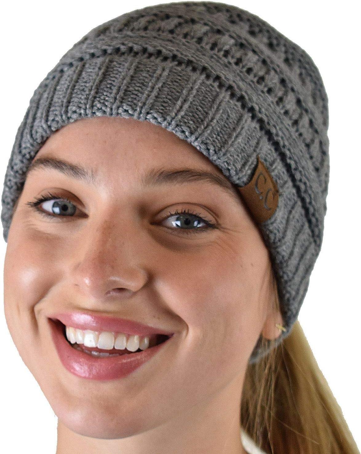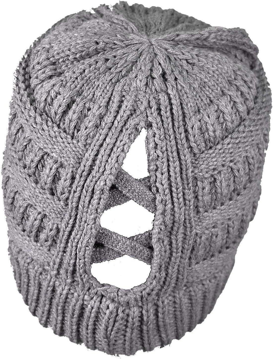 C.C BeanieTail Soft Stretch Cable Knit Messy High Bun Ponytail Beanie Hat(Criss Cross Light Melange Gray)