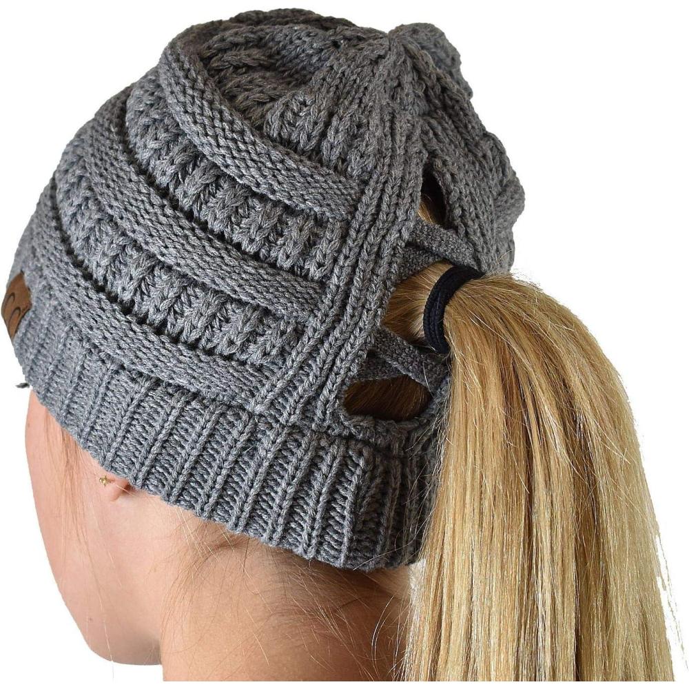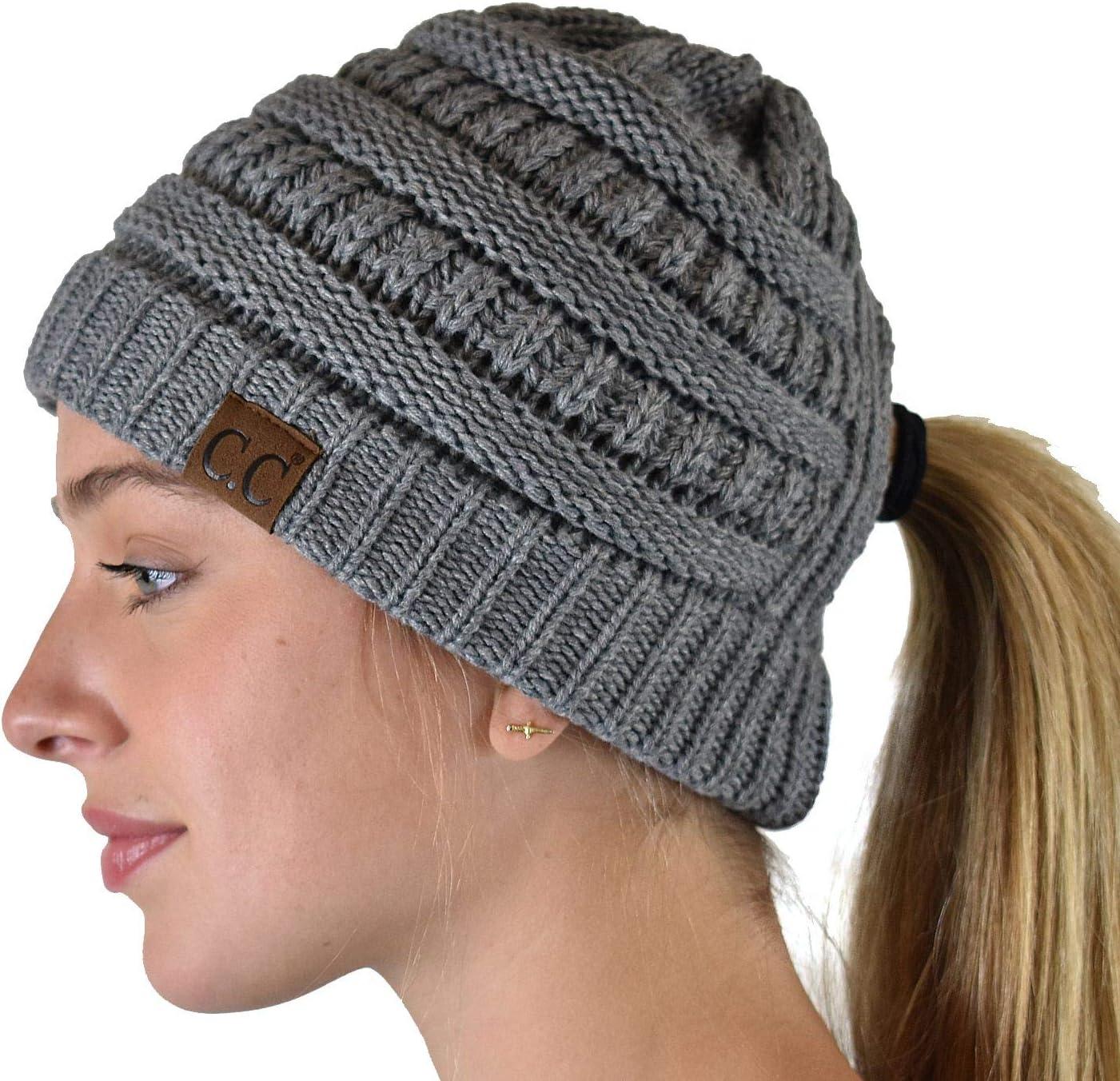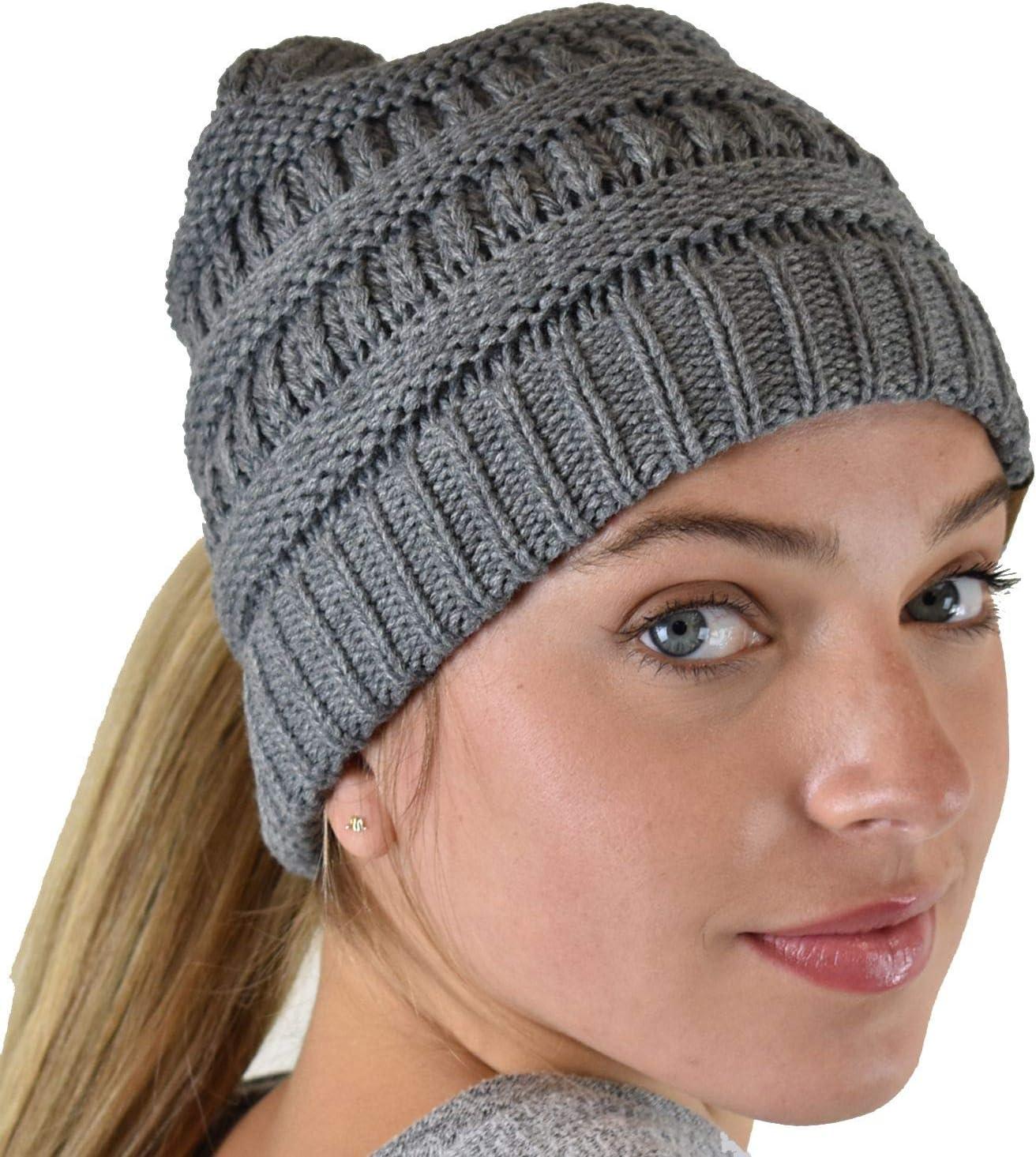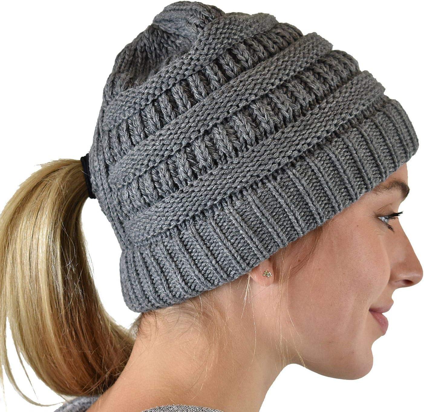 Be the first to review “C.C BeanieTail Soft Stretch Cable Knit Messy High Bun Ponytail Beanie Hat(Criss Cross Light Melange Gray)”