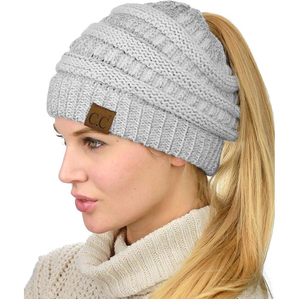 Don’t wait, get up to 50% off on C.C BeanieTail Soft Stretch Cable Knit Messy High Bun Ponytail Beanie Hat(Ivory/Silver Metallic) during our end-of-season sale event.