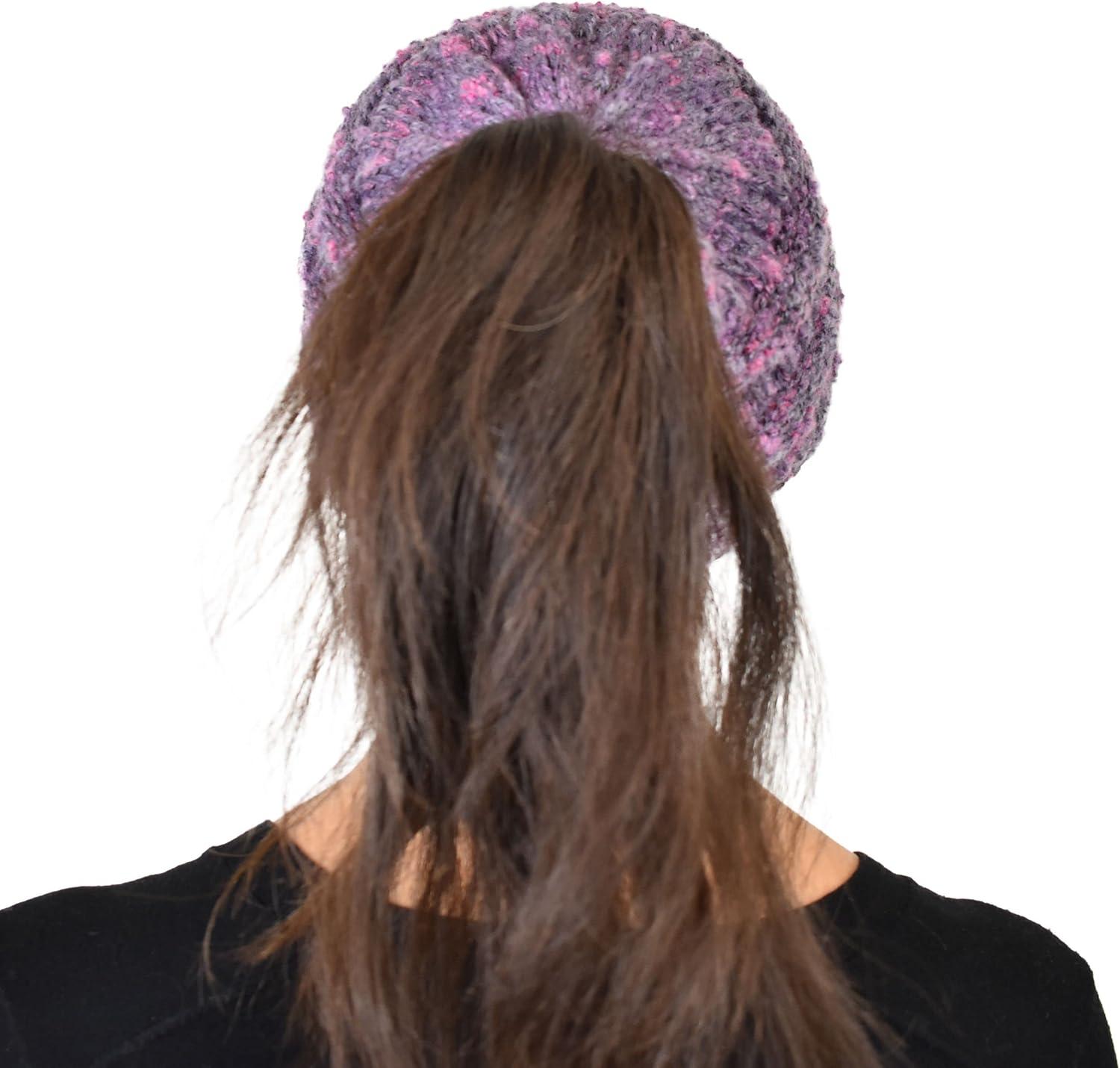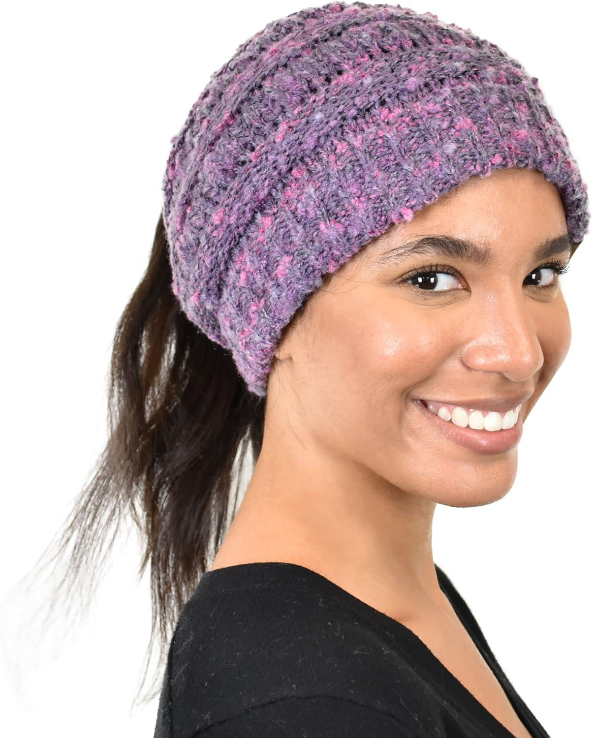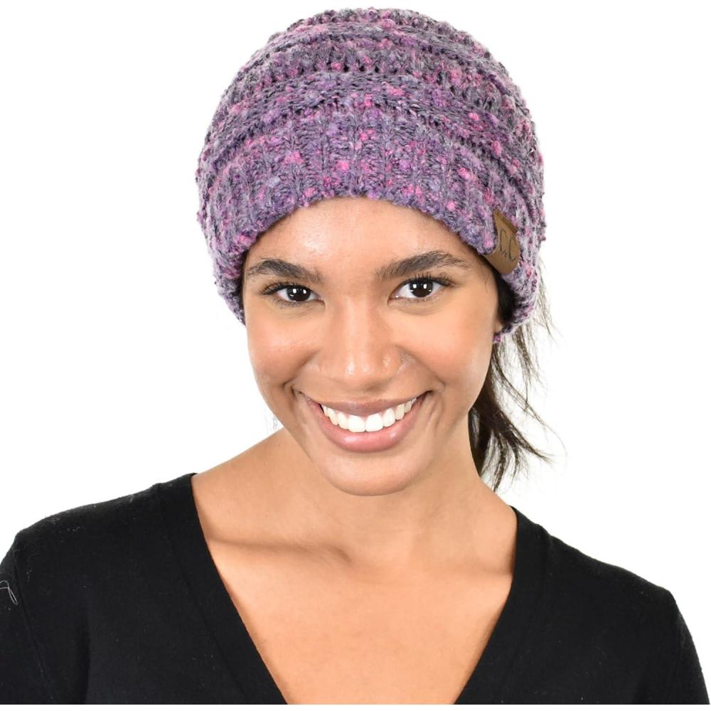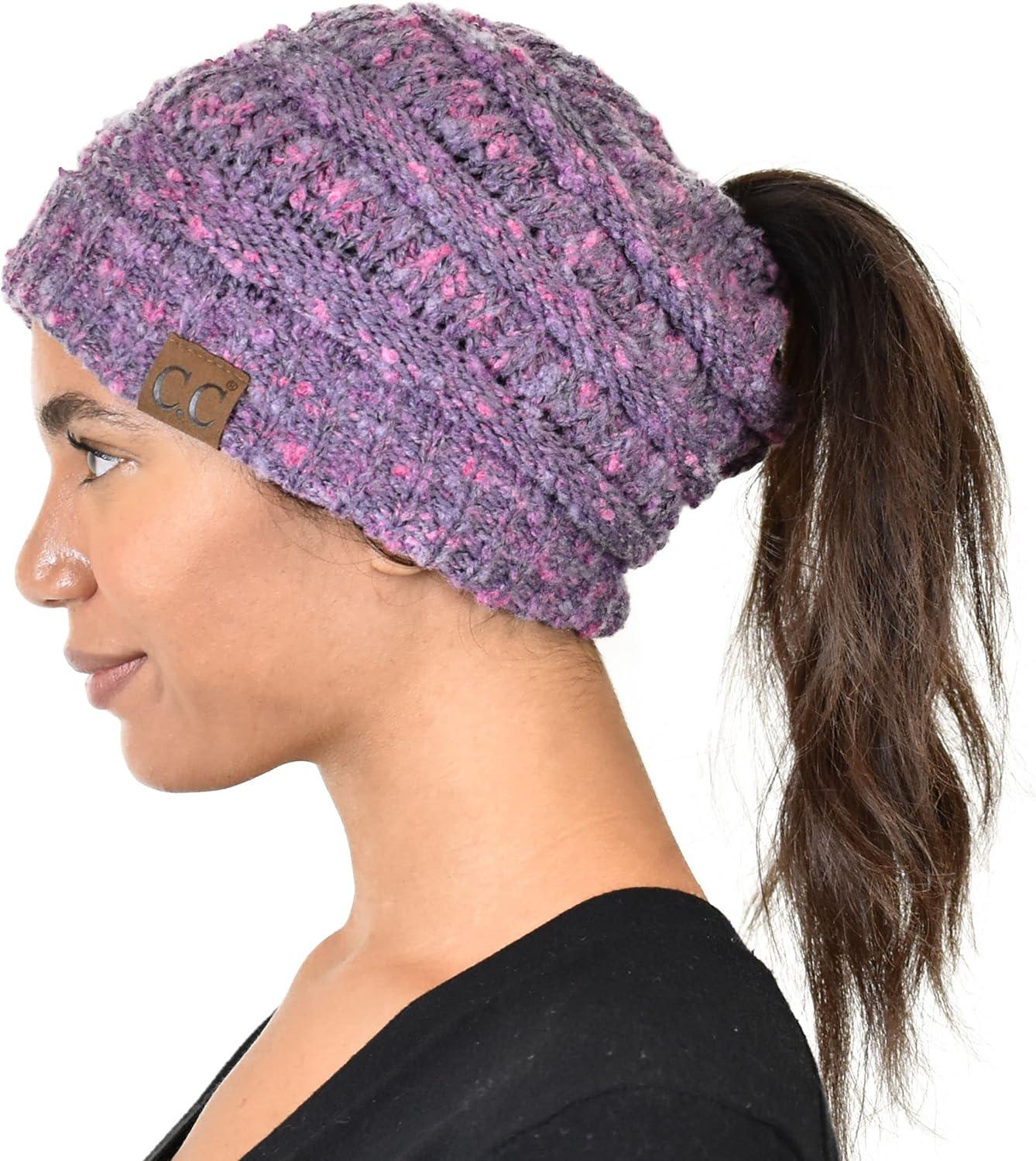 C.C BeanieTail Soft Stretch Cable Knit Messy High Bun Ponytail Beanie Hat(Popcorn Confetti Violet)