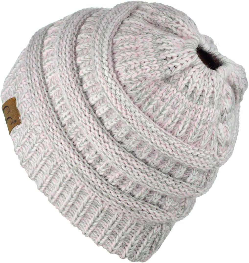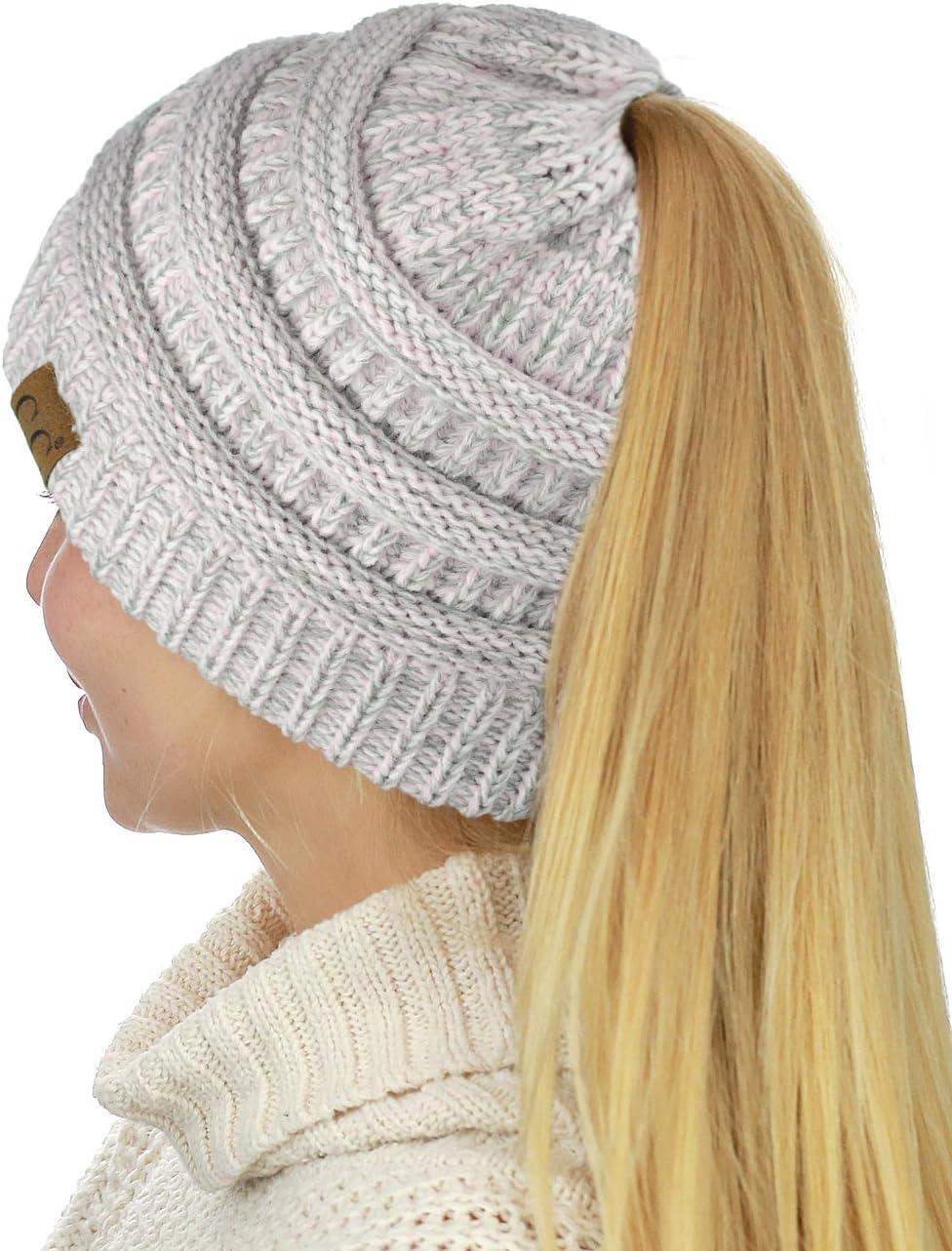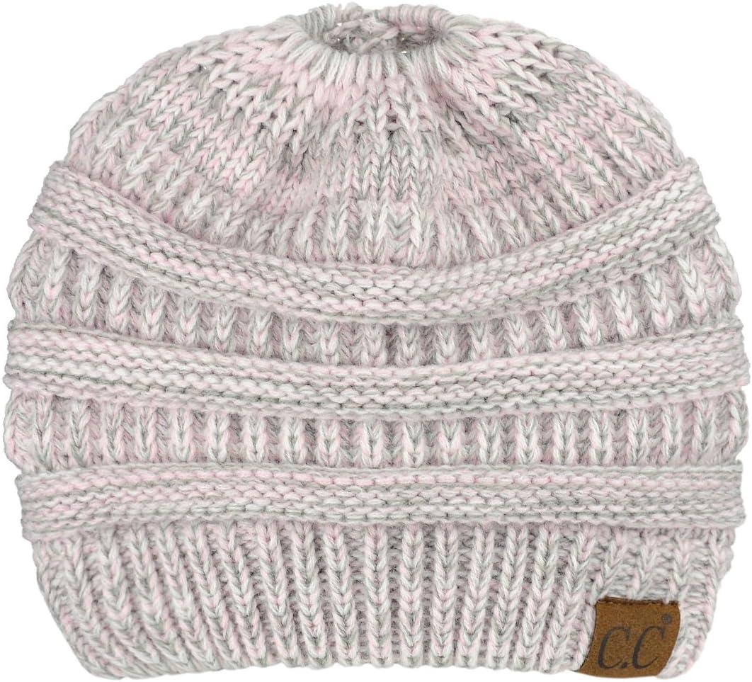 C.C BeanieTail Soft Stretch Cable Knit Messy High Bun Ponytail Beanie Hat(Rose Mix)