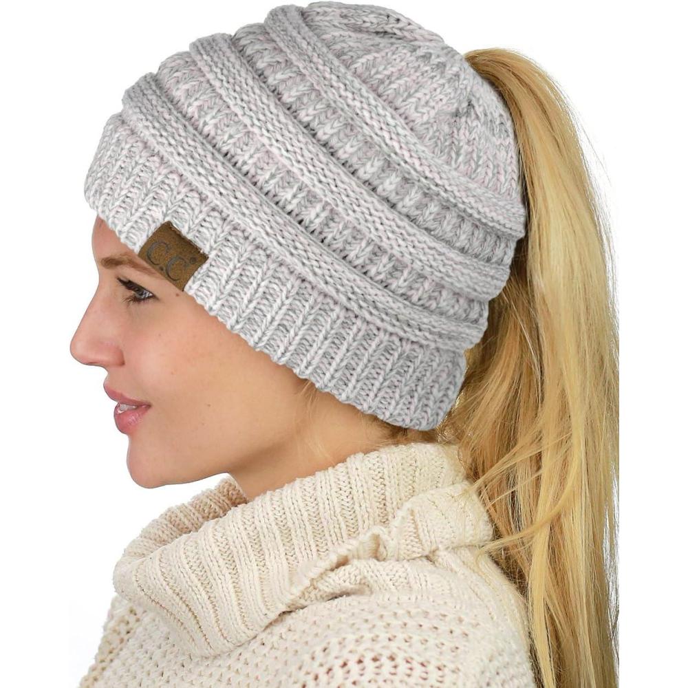 imageCC BeanieTail Soft Stretch Cable Knit Messy High Bun Ponytail Beanie HatRose Mix