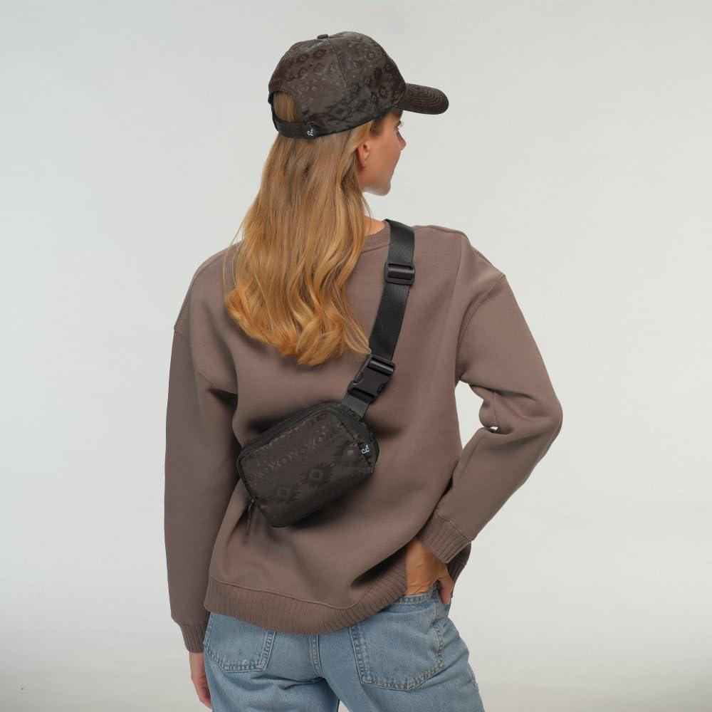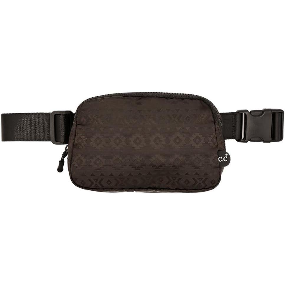 C.C. Belt Bag for Women: Crossbody Fanny Pack with Adjustable Strap – Fashion Waist Pack Gifts (BG-4253) (White)(Aztec Pattern – dk. grey)