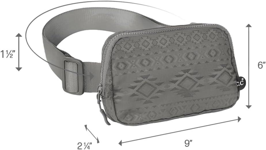 C.C. Belt Bag for Women: Crossbody Fanny Pack with Adjustable Strap – Fashion Waist Pack Gifts (BG-4253) (White)(Aztec Pattern – dk. grey)