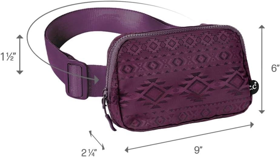 C.C. Belt Bag for Women: Crossbody Fanny Pack with Adjustable Strap – Fashion Waist Pack Gifts (BG-4253) (White)(Aztec Pattern – plum)