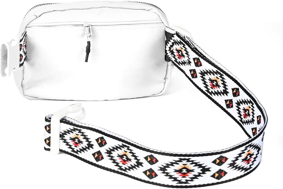 C.C. Belt Bag for Women: Crossbody Fanny Pack with Adjustable Strap – Fashion Waist Pack Gifts (BG-4253) (White)(Aztec Strap-Black)