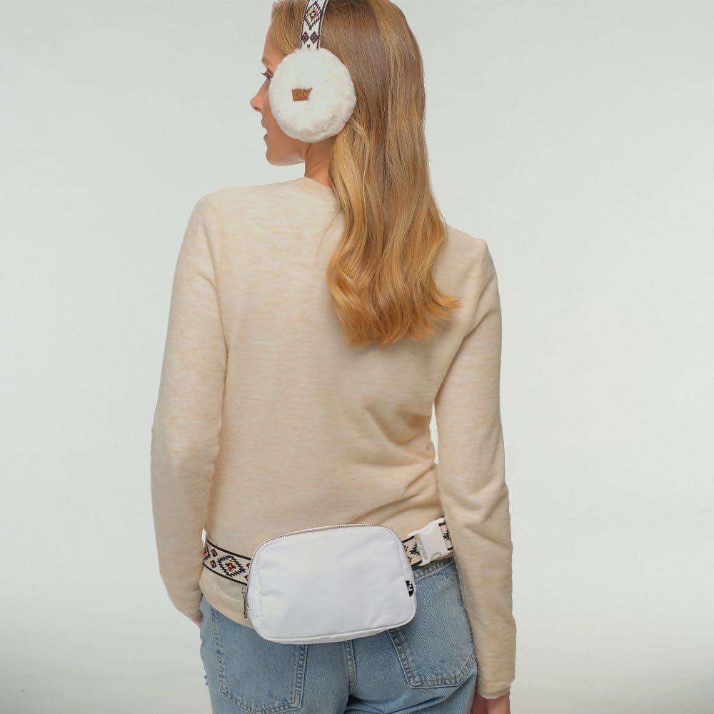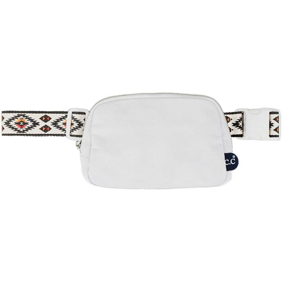 C.C. Belt Bag for Women: Crossbody Fanny Pack with Adjustable Strap - Fashion Waist Pack Gifts (BG-4253) (White)(Aztec Strap-White)
