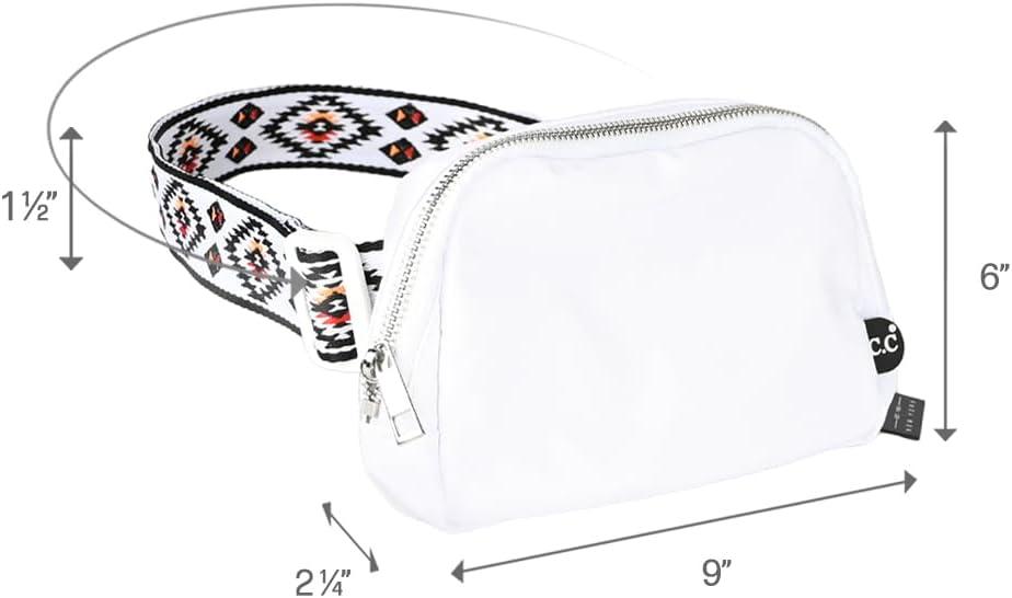 C.C. Belt Bag for Women: Crossbody Fanny Pack with Adjustable Strap – Fashion Waist Pack Gifts (BG-4253) (White)(Aztec Strap-White)