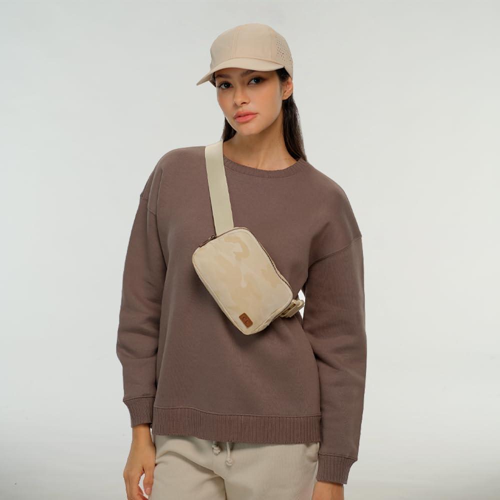 C.C. Belt Bag for Women: Crossbody Fanny Pack with Adjustable Strap - Fashion Waist Pack Gifts (BG-4253) (White)(Camo beige)