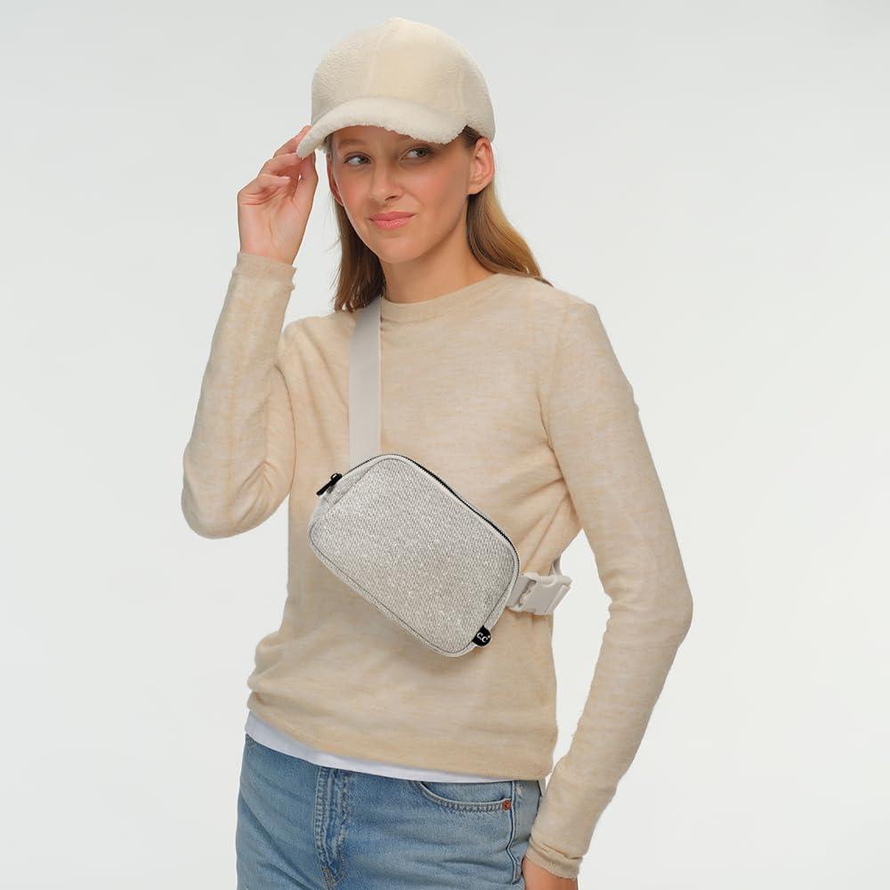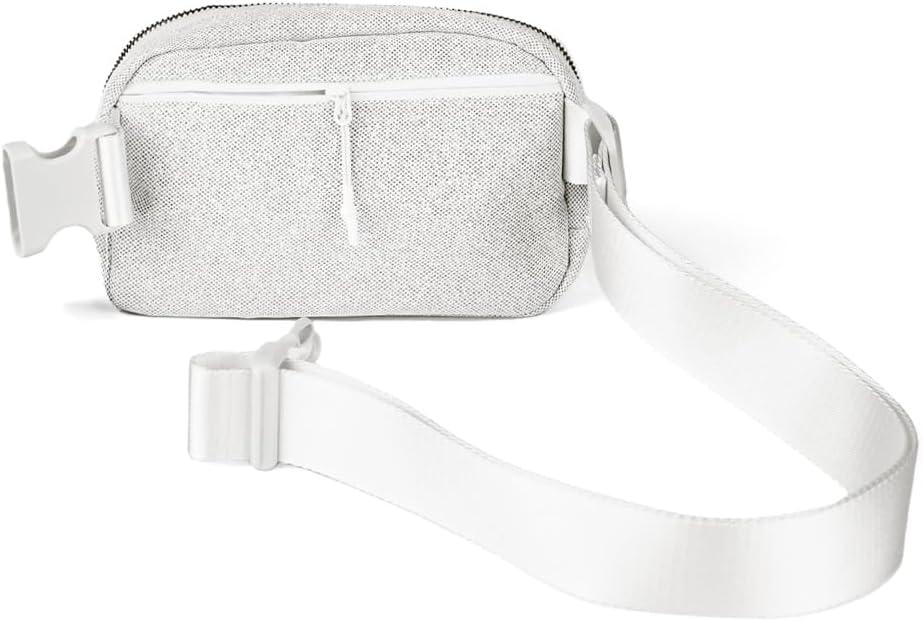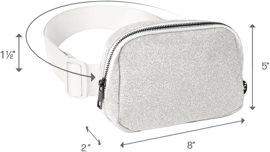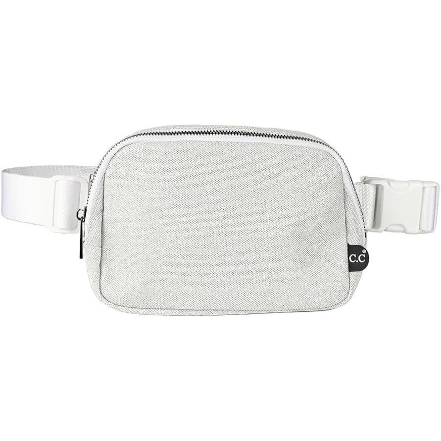 C.C. Belt Bag for Women: Crossbody Fanny Pack with Adjustable Strap – Fashion Waist Pack Gifts (BG-4253) (White)(Glitter-Silver)