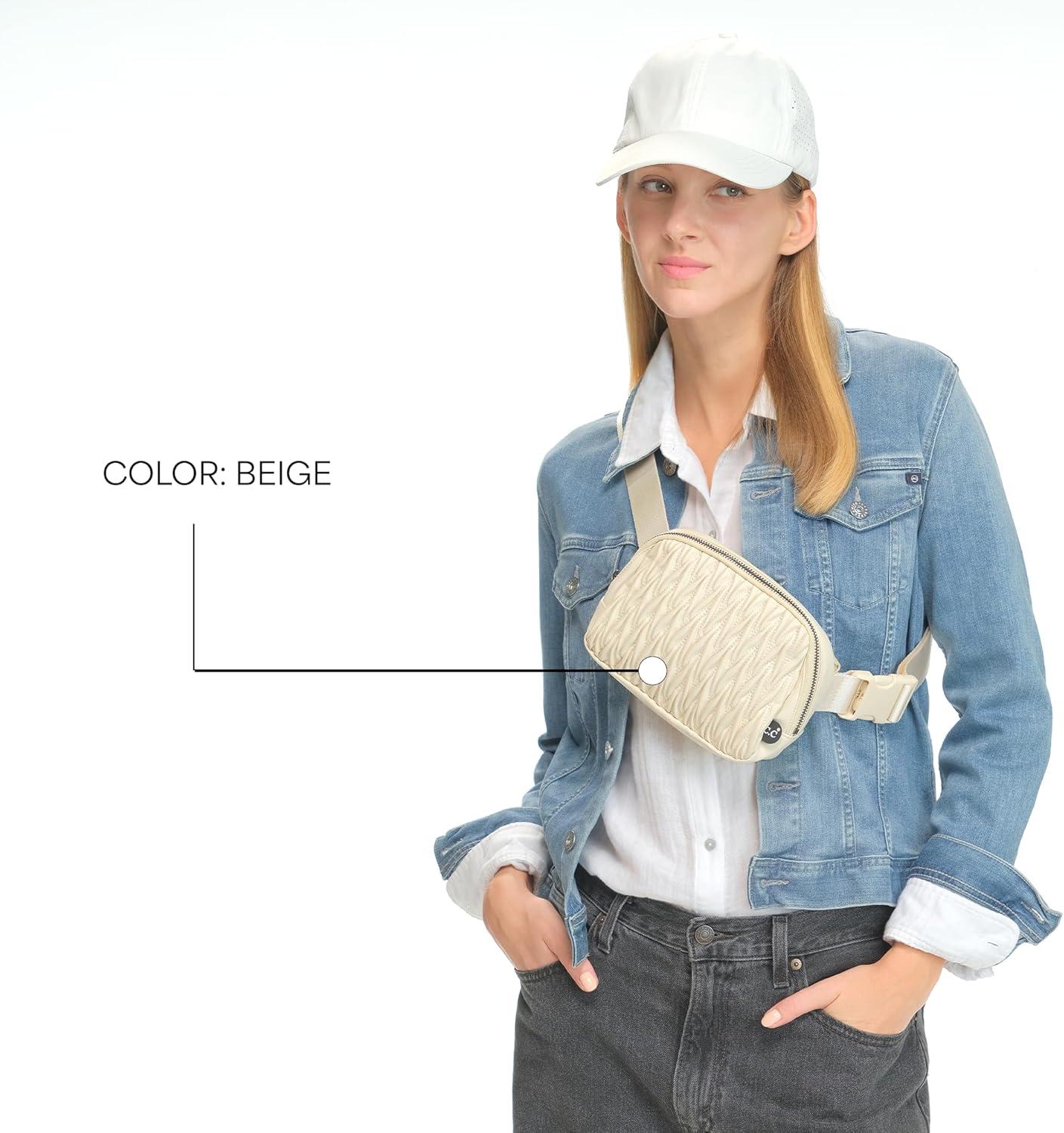 C.C. Belt Bag for Women: Crossbody Fanny Pack with Adjustable Strap – Fashion Waist Pack Gifts (BG-4253) (White)(Materasse – Beige)