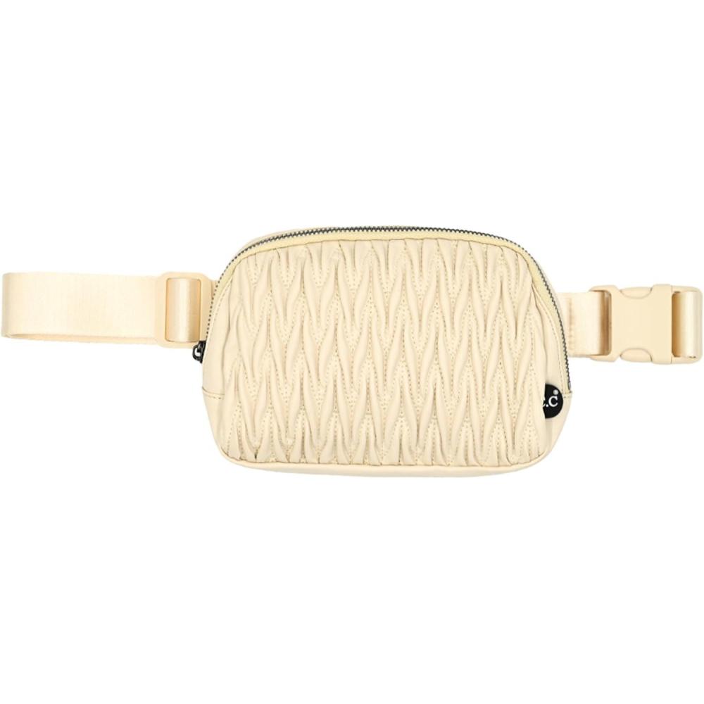 C.C. Belt Bag for Women: Crossbody Fanny Pack with Adjustable Strap - Fashion Waist Pack Gifts (BG-4253) (White)(Materasse - Beige)