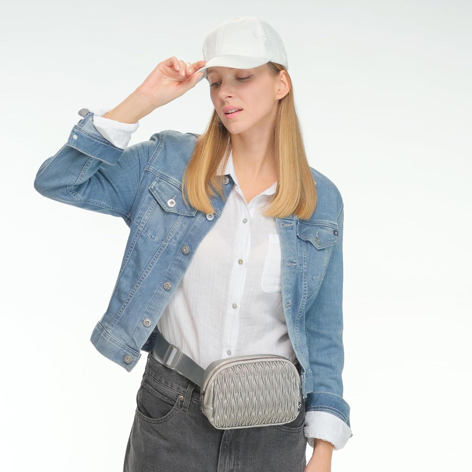 C.C. Belt Bag for Women: Crossbody Fanny Pack with Adjustable Strap – Fashion Waist Pack Gifts (BG-4253) (White)(Materasse – Silver)