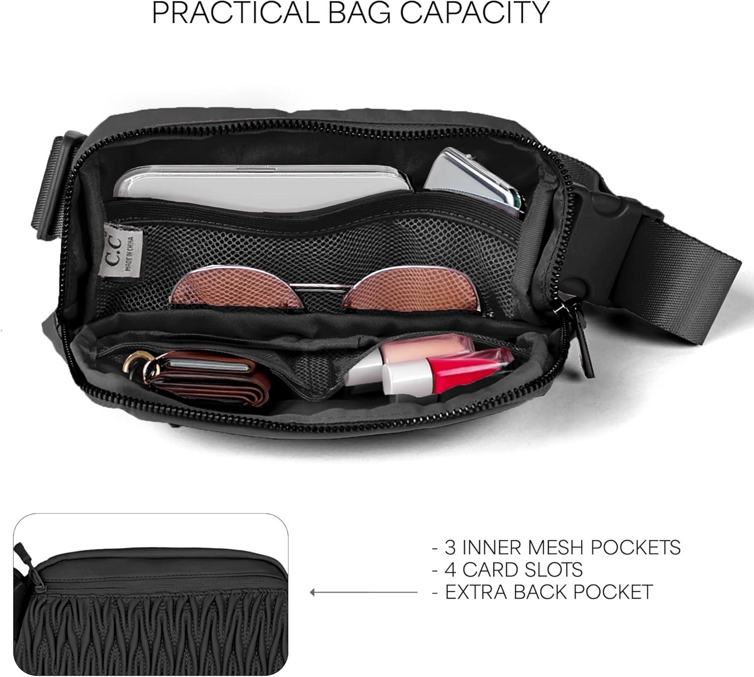 Versatile Style: Adjustable Strap allow you to wear this C.C Fanny Pack in a variety of ways. It can be carried as cross bag, shoulder bag, waist bag or handbag.