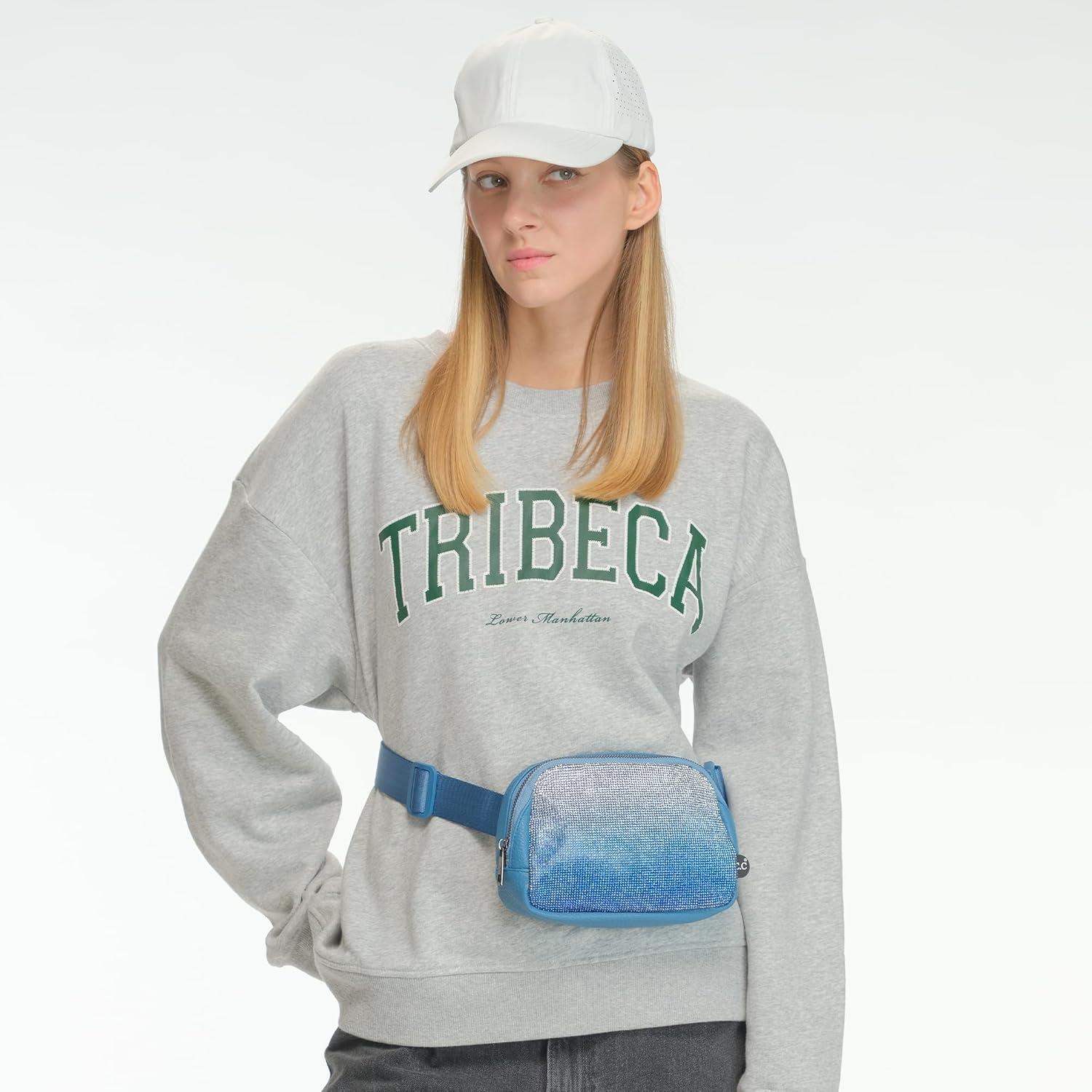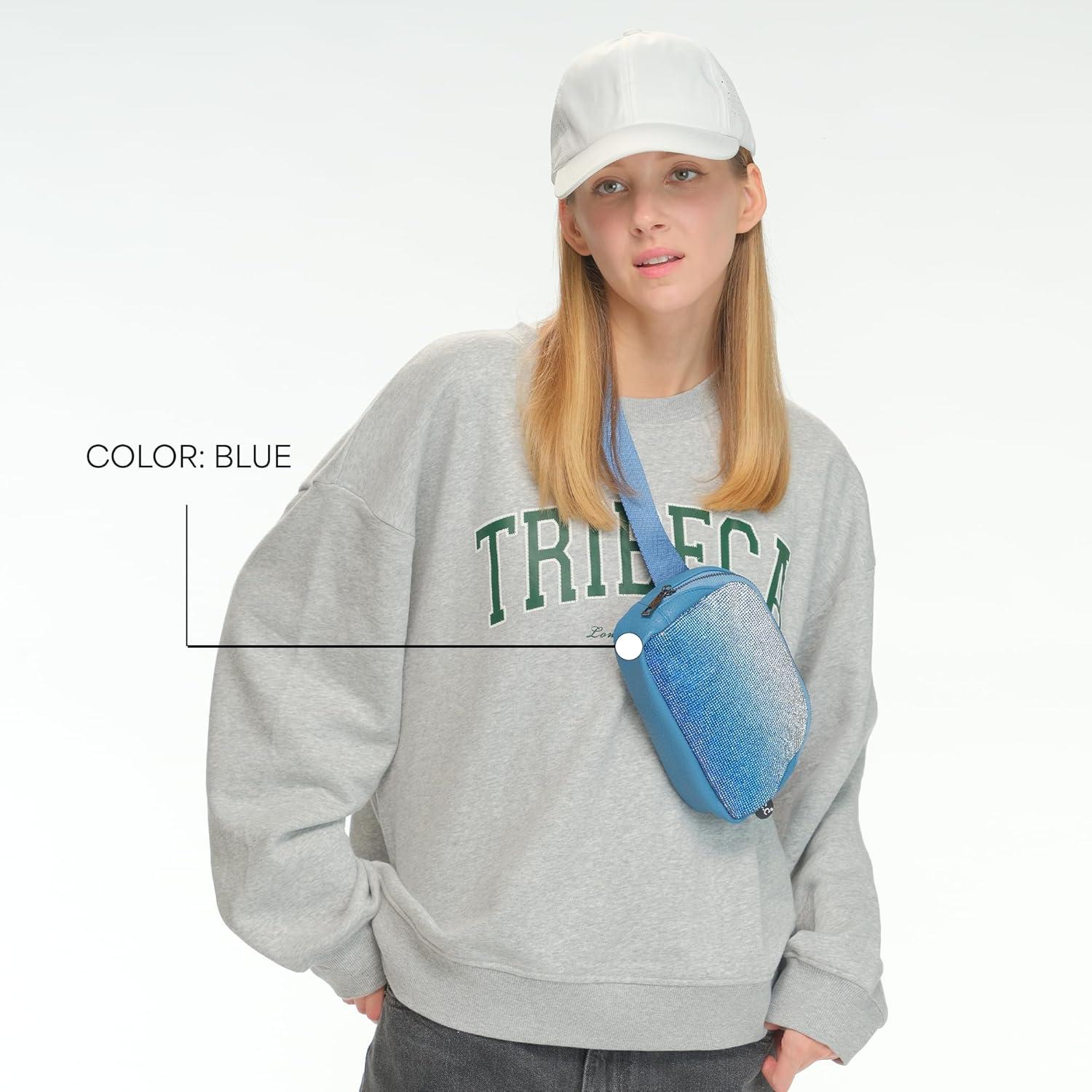 imageCC Belt Bag for Women Crossbody Fanny Pack with Adjustable Strap  Fashion Waist Pack Gifts BG4253 WhiteOmbre Rhinestone  Blue