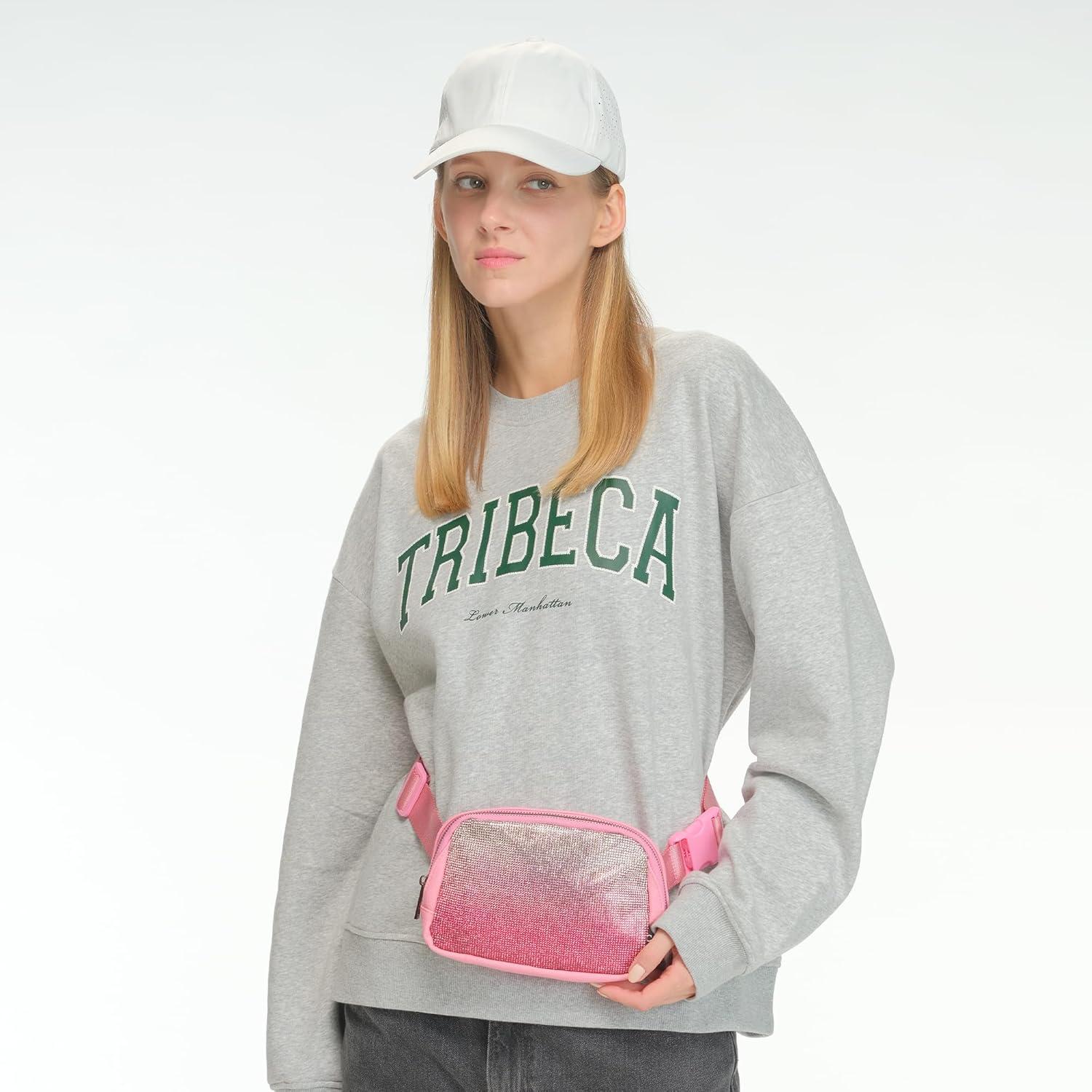 imageCC Belt Bag for Women Crossbody Fanny Pack with Adjustable Strap  Fashion Waist Pack Gifts BG4253 WhiteOmbre Rhinestone  Hot Pink