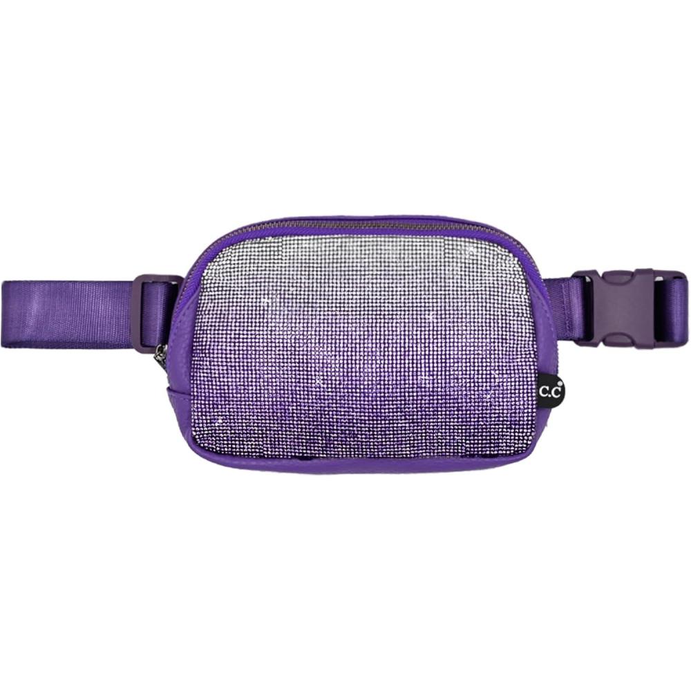 C.C. Belt Bag for Women: Crossbody Fanny Pack with Adjustable Strap - Fashion Waist Pack Gifts (BG-4253) (White)(Ombre Rhinestone - Purple)