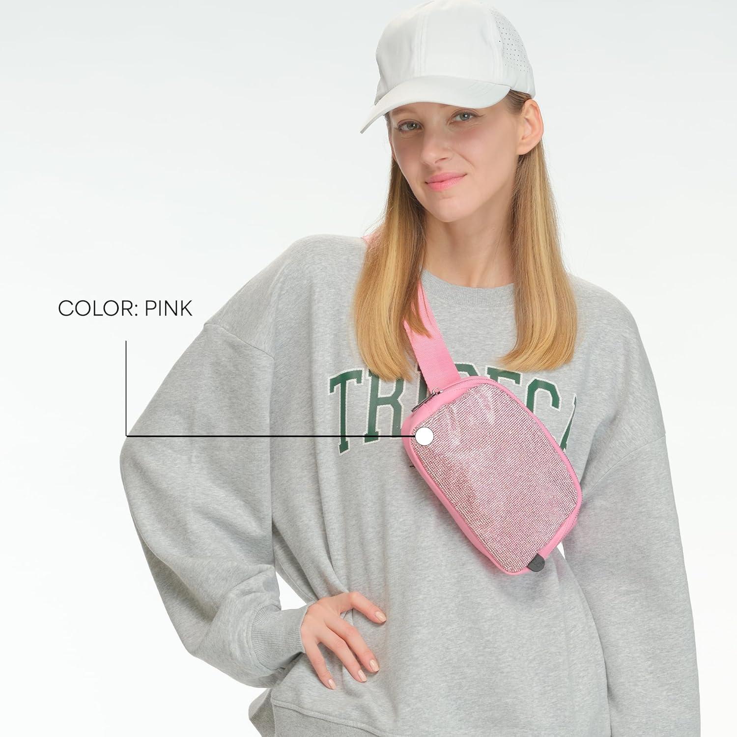 imageCC Belt Bag for Women Crossbody Fanny Pack with Adjustable Strap  Fashion Waist Pack Gifts BG4253 WhiteRhinestone  Pink