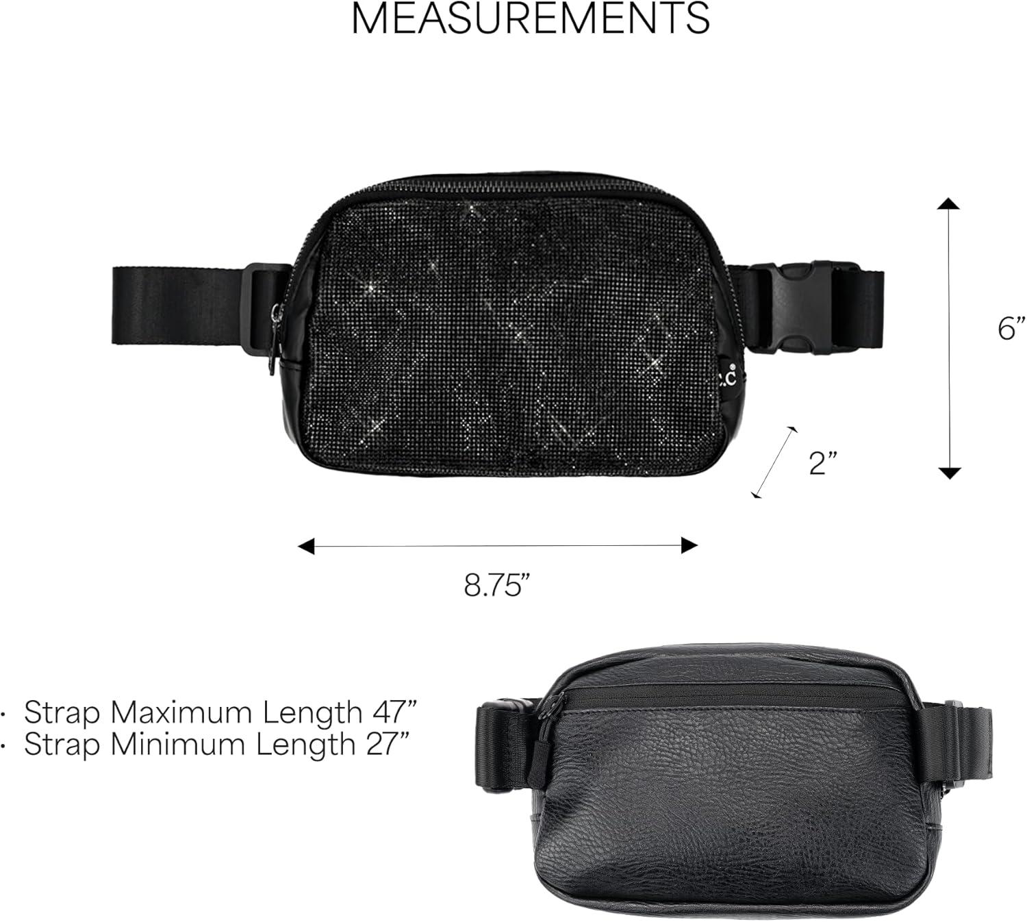 C.C. Belt Bag for Women: Crossbody Fanny Pack with Adjustable Strap – Fashion Waist Pack Gifts (BG-4253) (White)(Rhinestone – Silver)