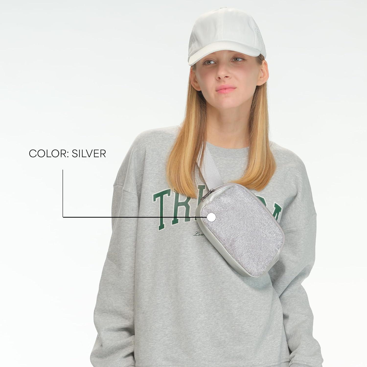 imageCC Belt Bag for Women Crossbody Fanny Pack with Adjustable Strap  Fashion Waist Pack Gifts BG4253 WhiteRhinestone  Silver