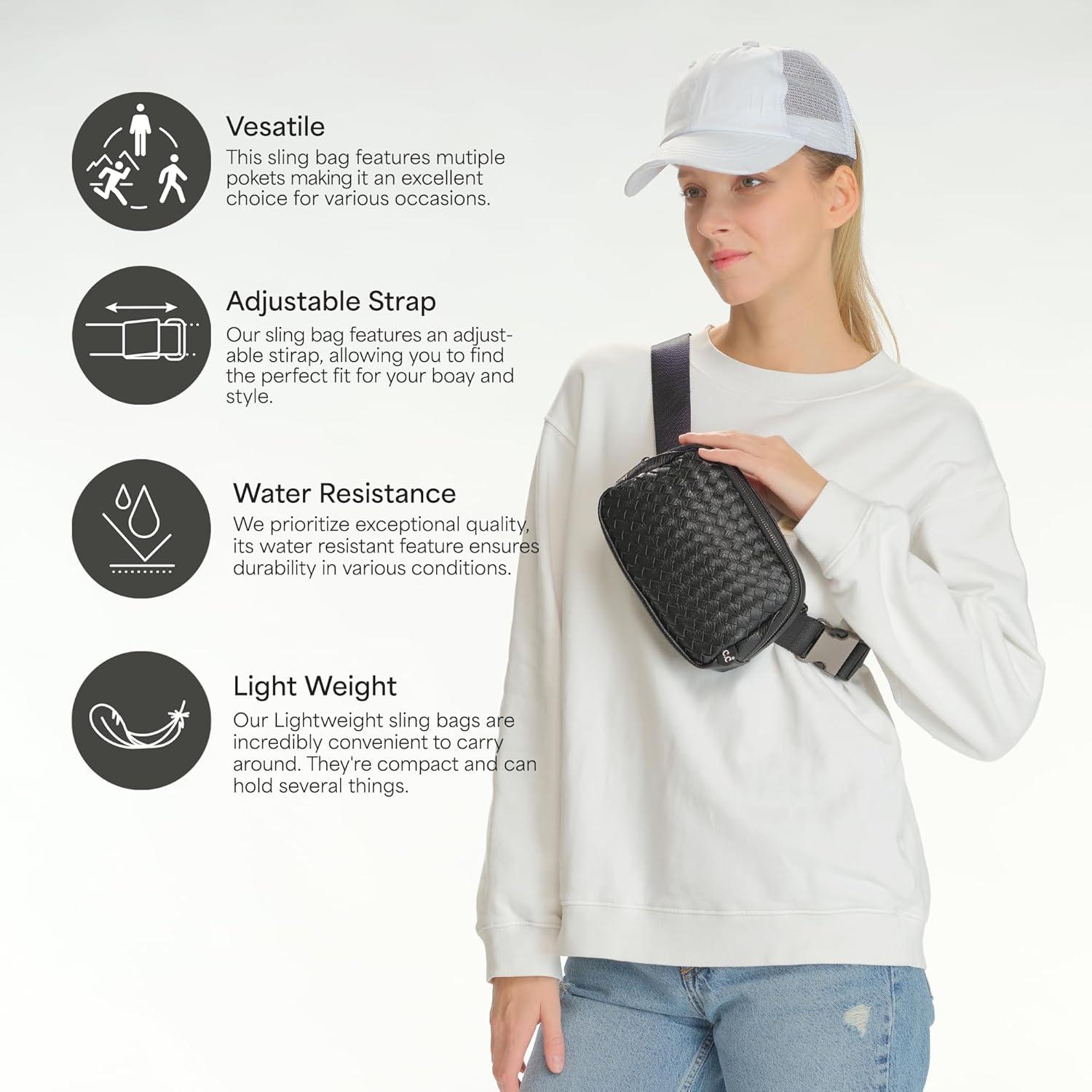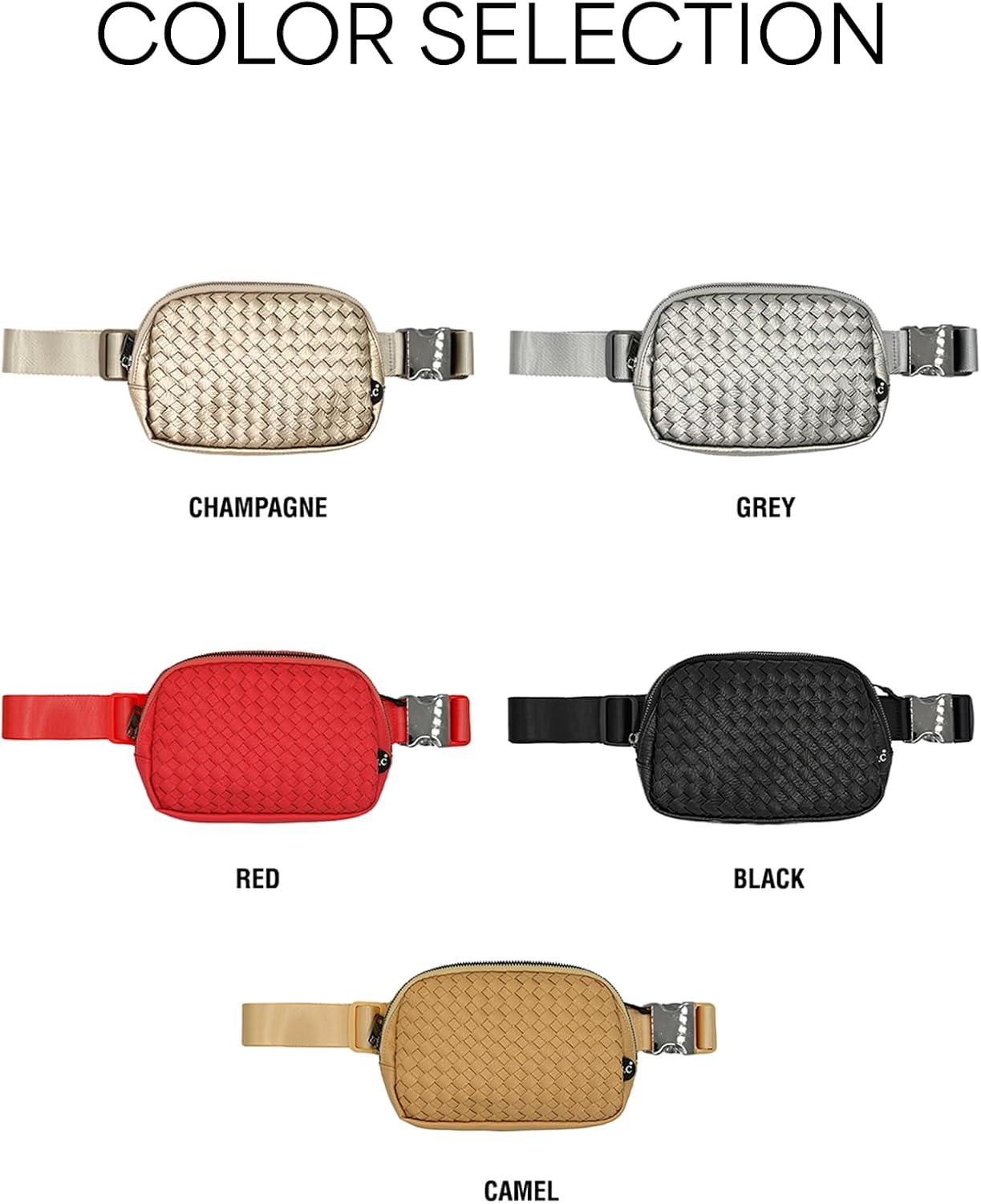 C.C. Belt Bag for Women: Crossbody Fanny Pack with Adjustable Strap – Fashion Waist Pack Gifts (BG-4253) (White)(Vegan Leather Woven – Black)