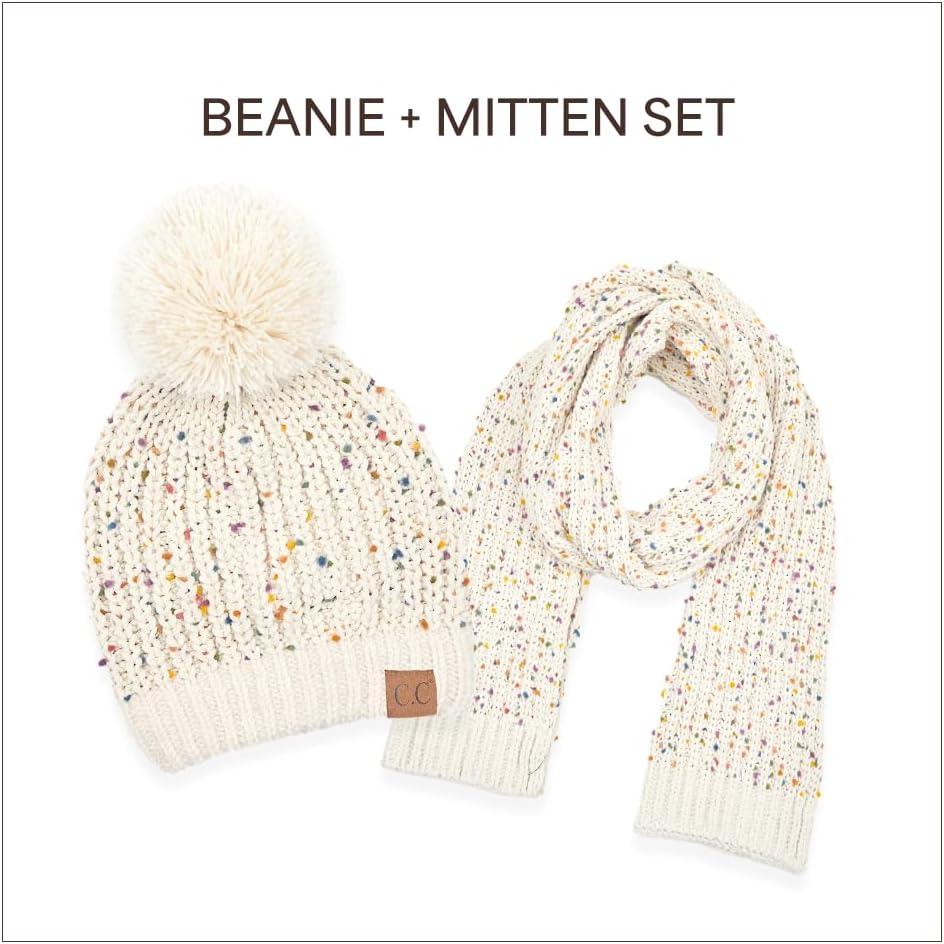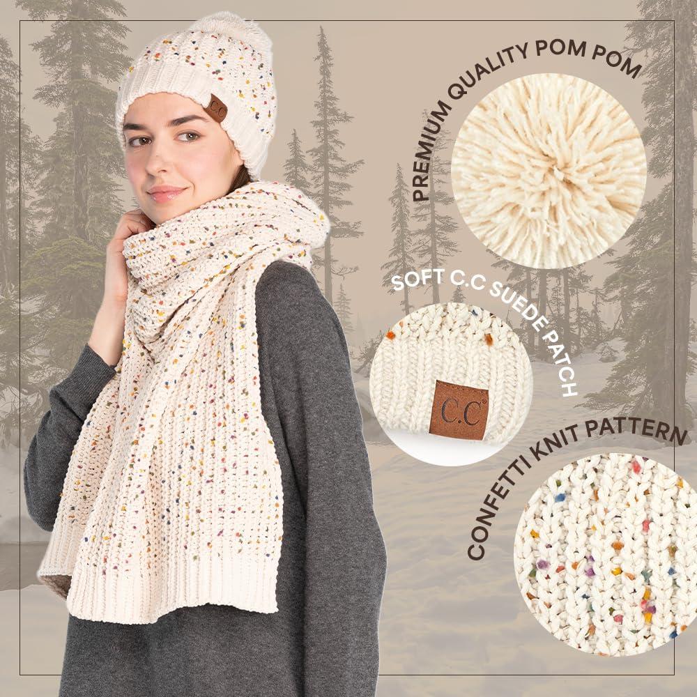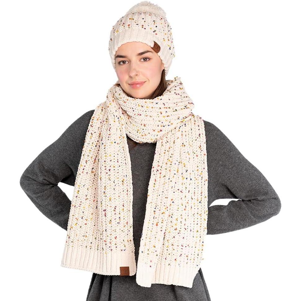 C.C Cable Knit Beanie and Scarf Set, Colorful Confetti Pattern, Winter Accessories(Oatmeal)