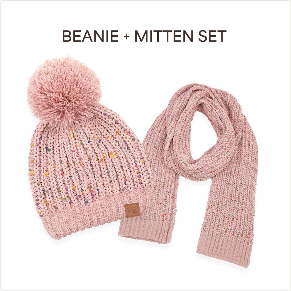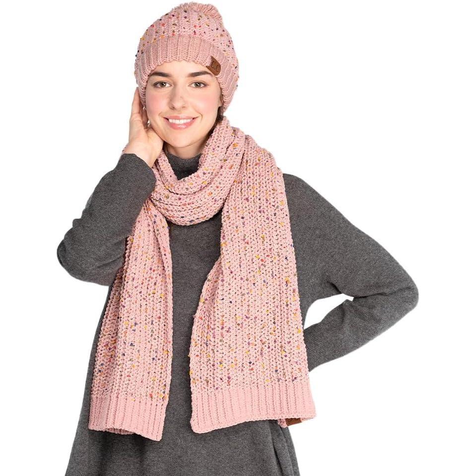 C.C Cable Knit Beanie and Scarf Set, Colorful Confetti Pattern, Winter Accessories(Rose)