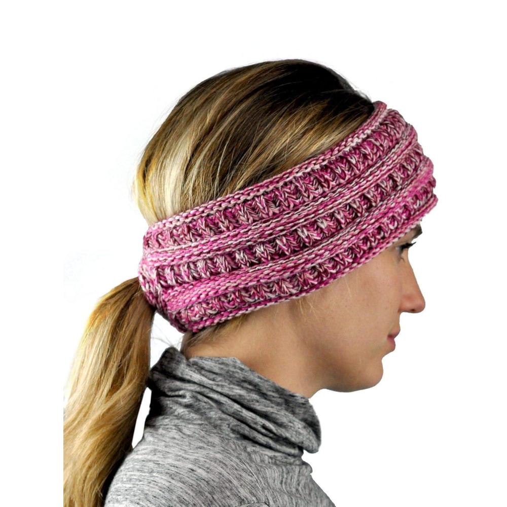 imageCC Cable Knit Fuzzy Lined Ear Warmer Ponytail Pony Headband BlackCandy Pink