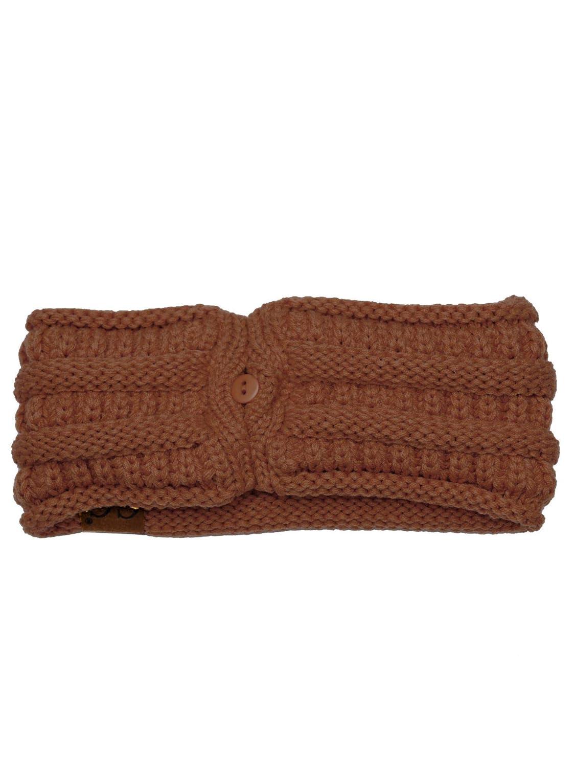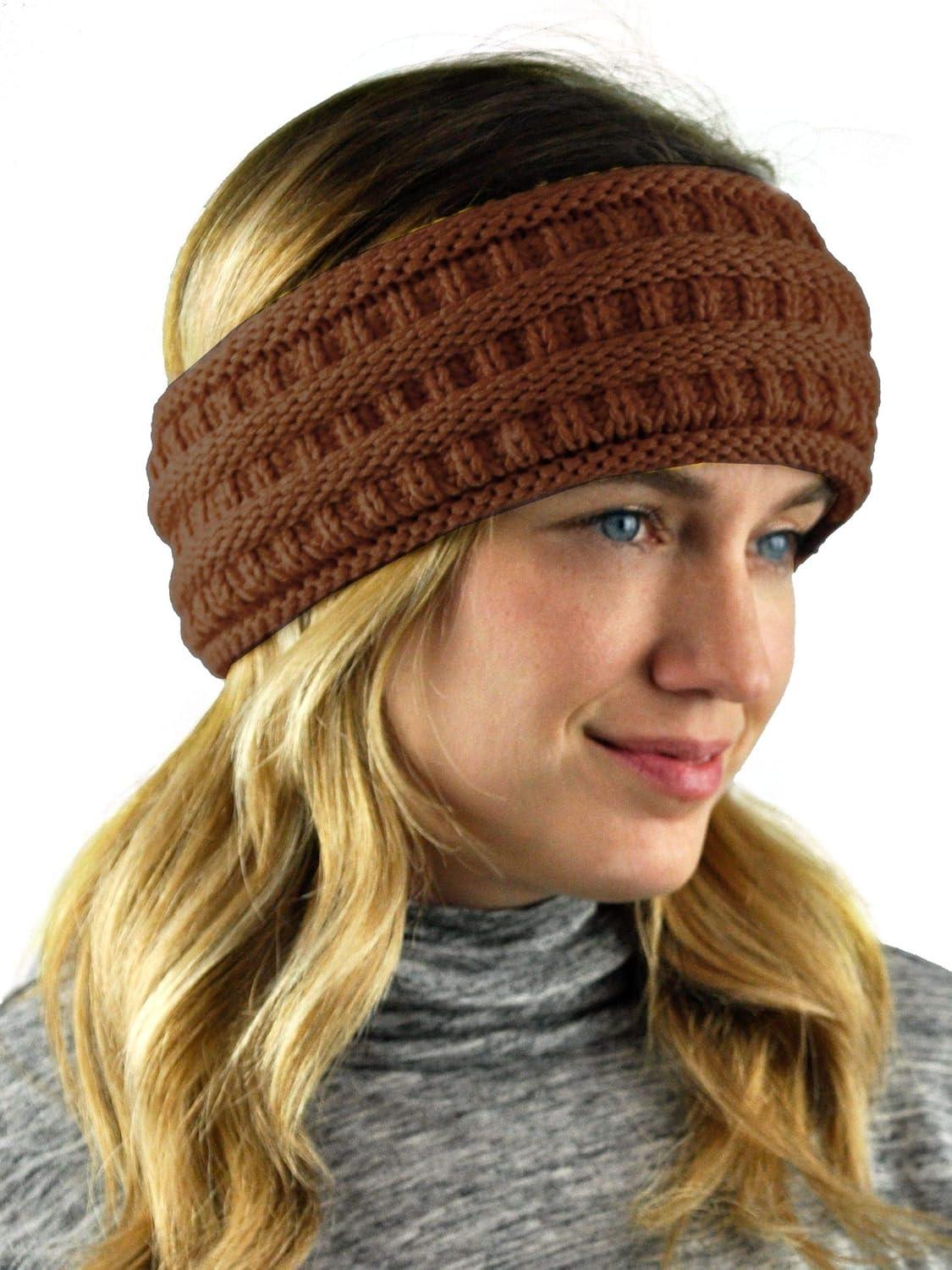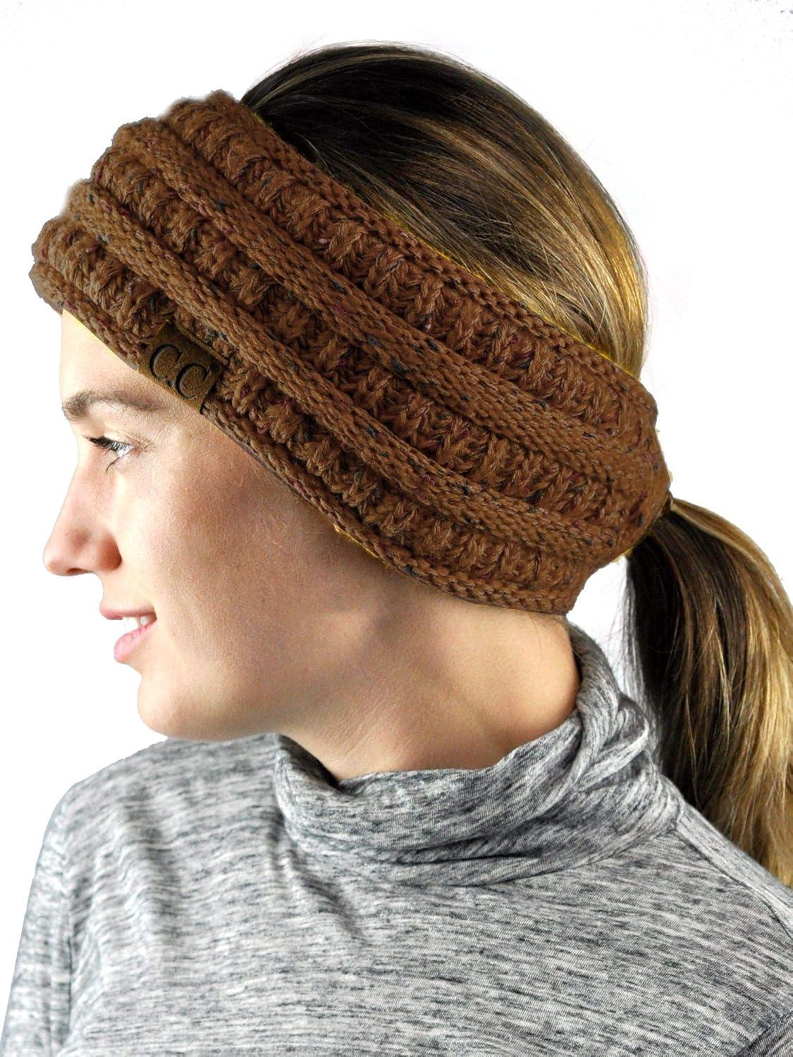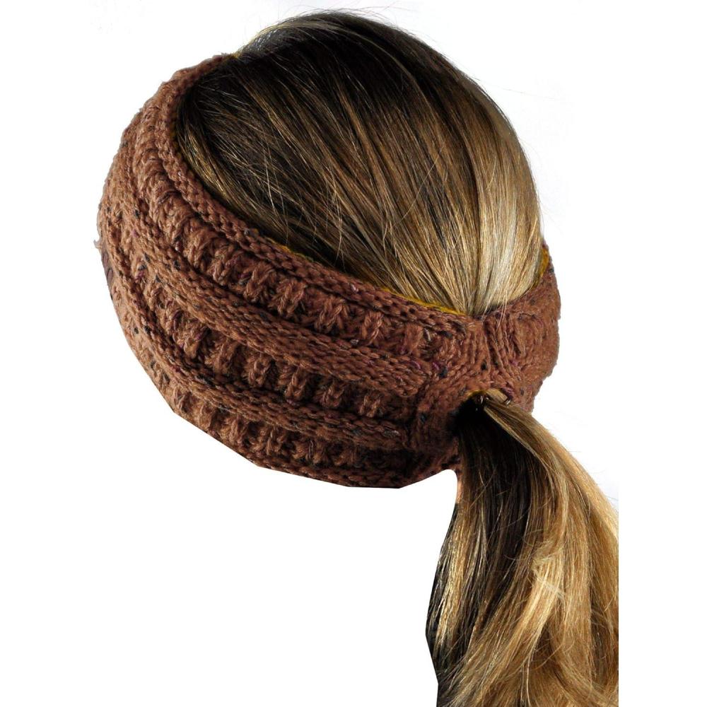 C.C Cable Knit Fuzzy Lined Ear Warmer Ponytail Pony Headband, Black(Rust)