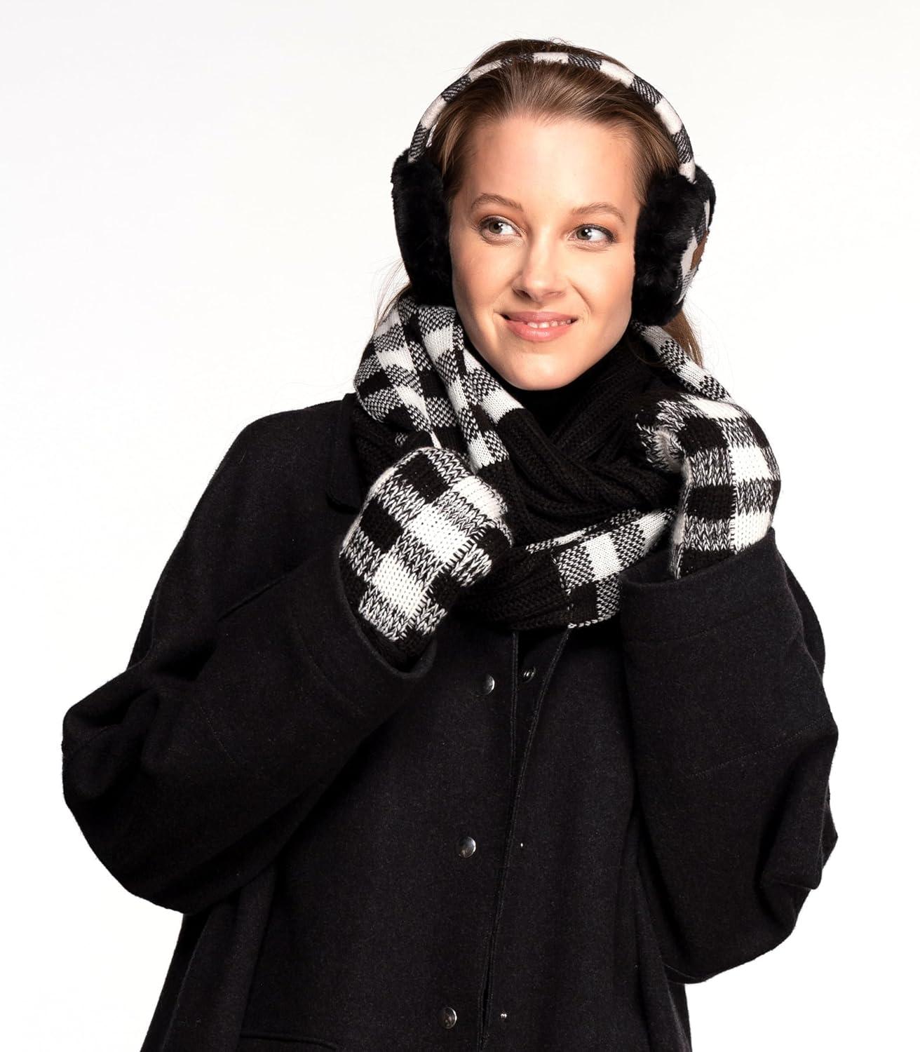 imageCC CC Super Thick Fuzzy Fleeced Lined Warm Winter Knitted Mittens GlovesBuffalo Plaid BlackWhite
